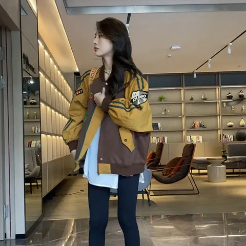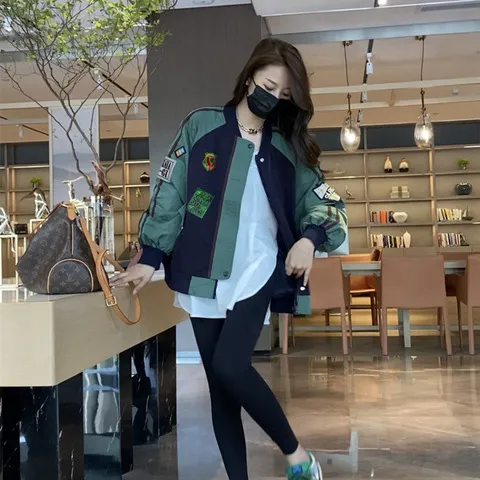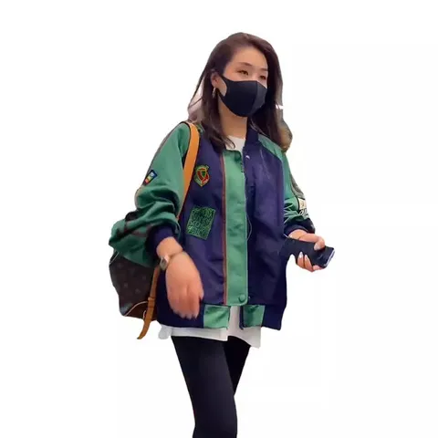 休闲美式女女式夹克棒球服韩版撞色复古春秋季外套ins飞行员宽松