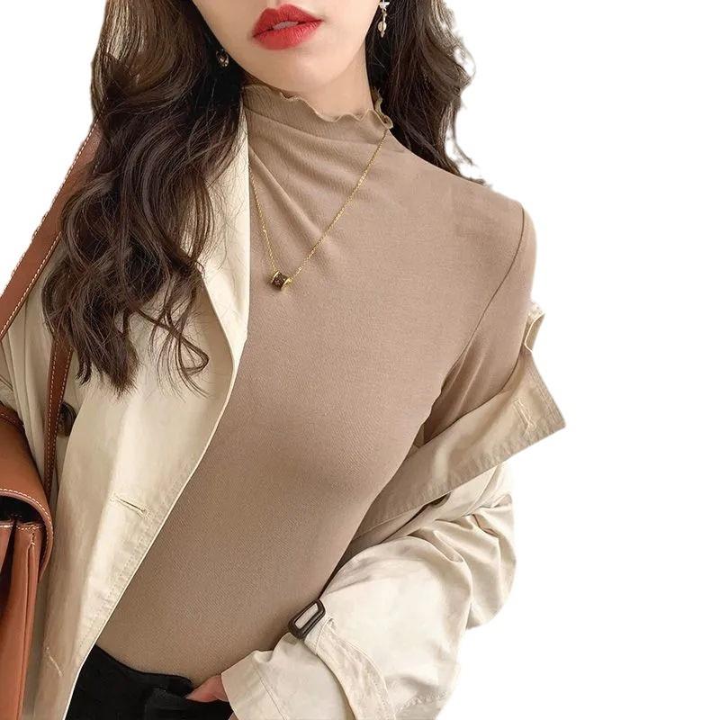 半高领德绒打底衫女内搭秋冬新款长袖木耳边洋气学生加厚上衣