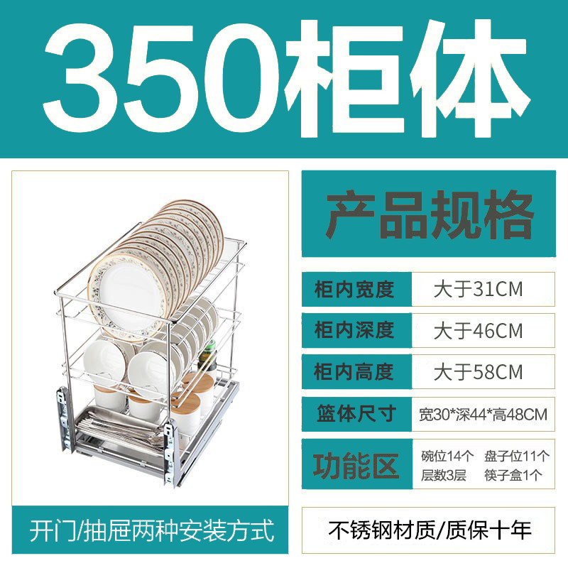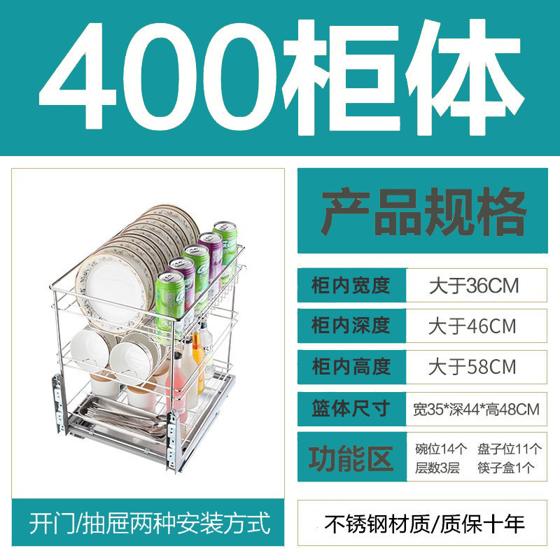 浅居拉篮304不j锈钢双层调味厨房橱柜厨柜碗篮阻尼小拉篮抽屉热卖