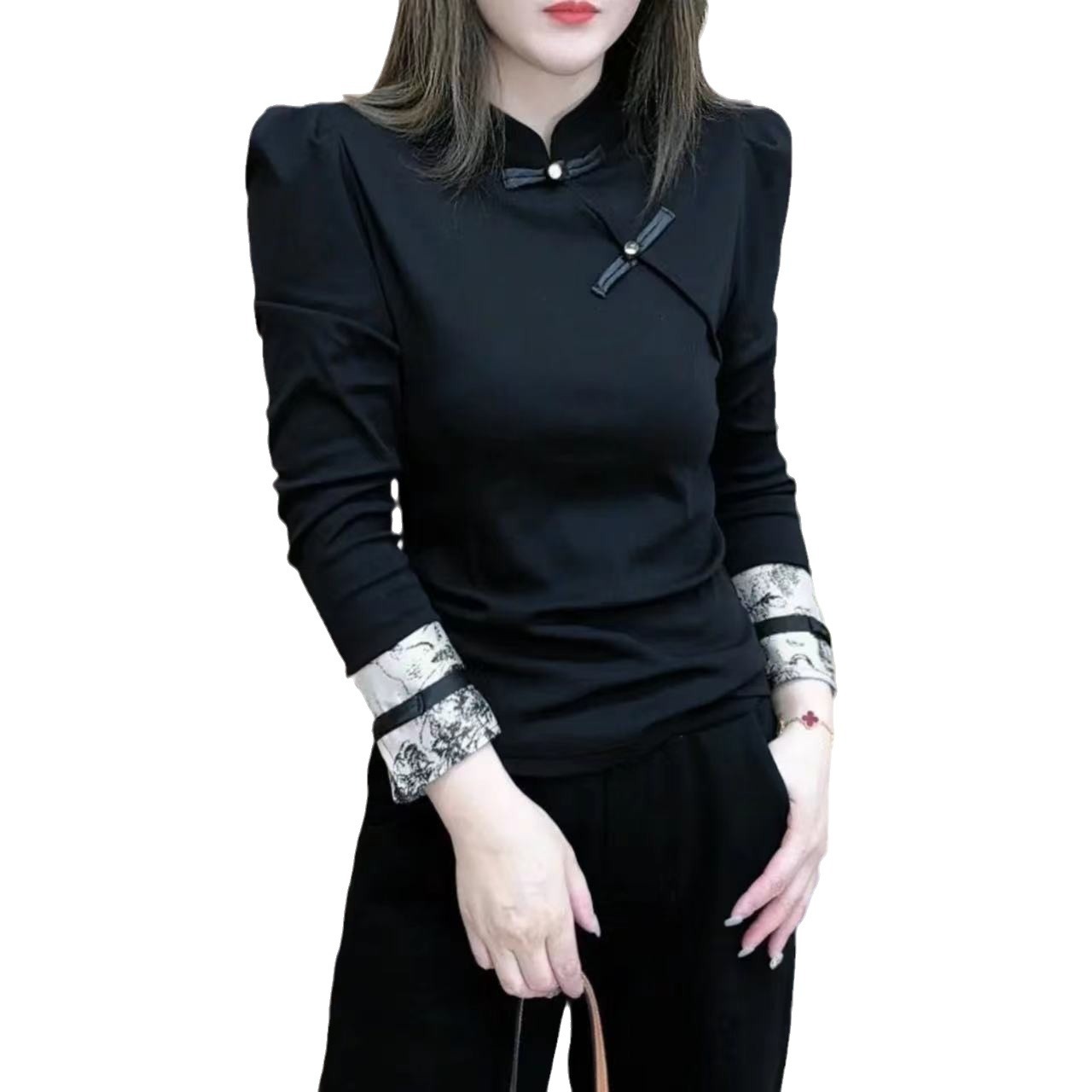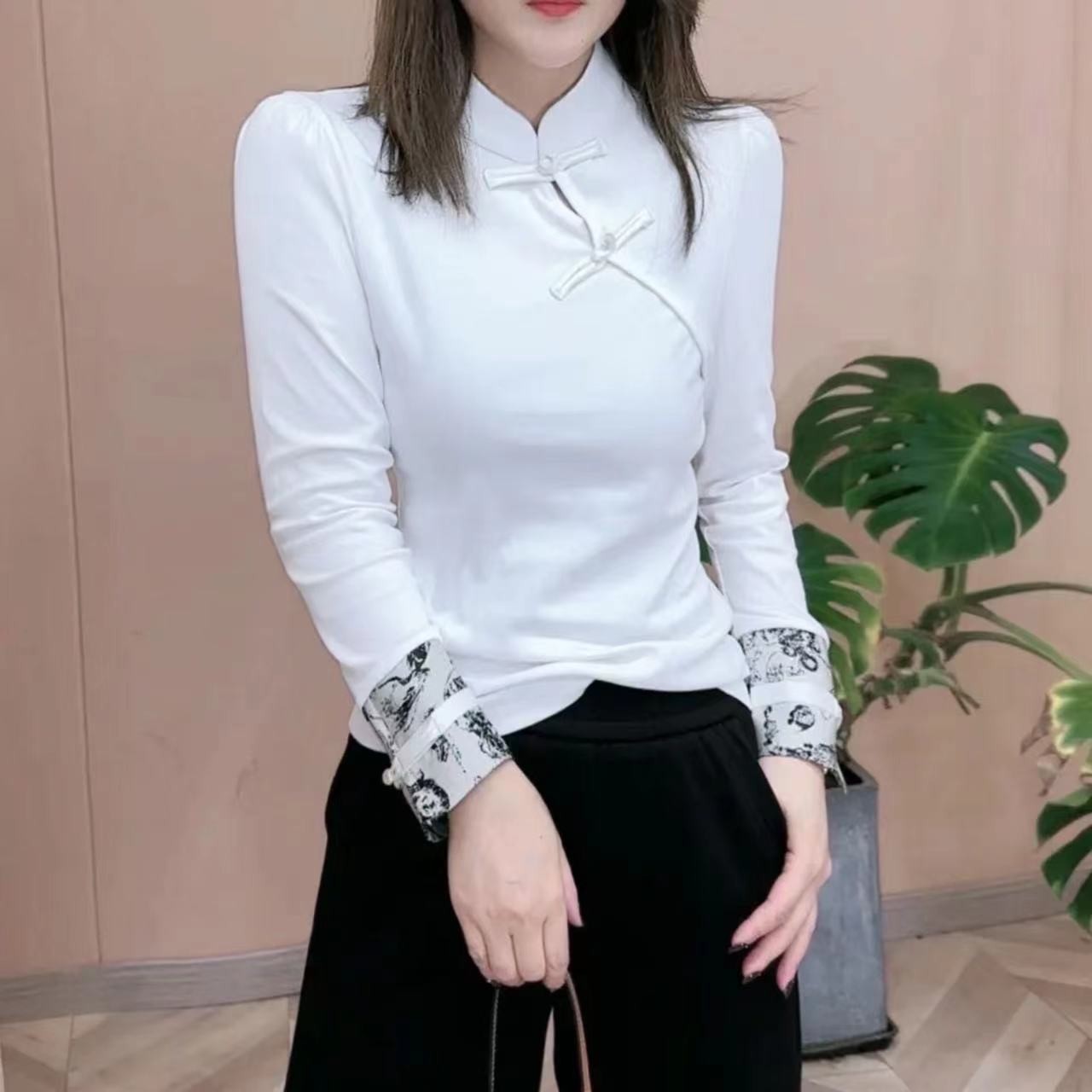 新中式立领盘扣T恤国风新款时尚洋气春装气质百搭显瘦春秋上衣女