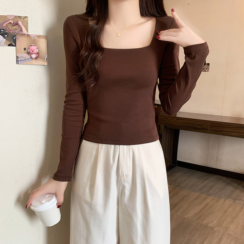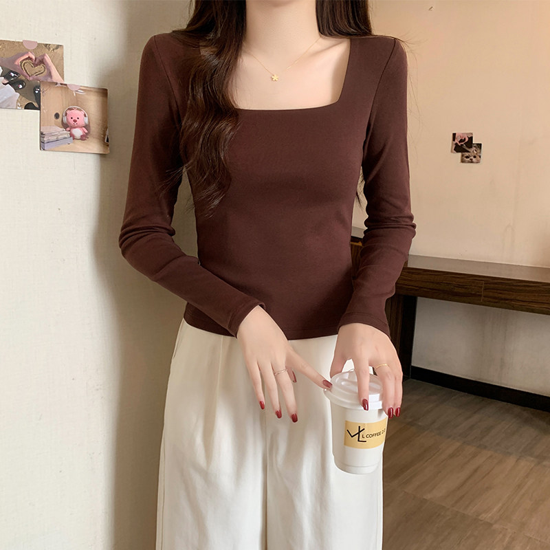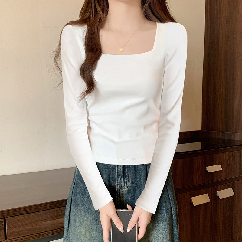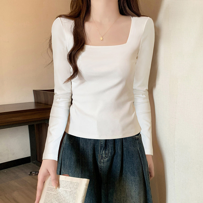 法式白色方领打底衫女2025新款秋冬纯棉低领洋气内搭修身长袖上衣
