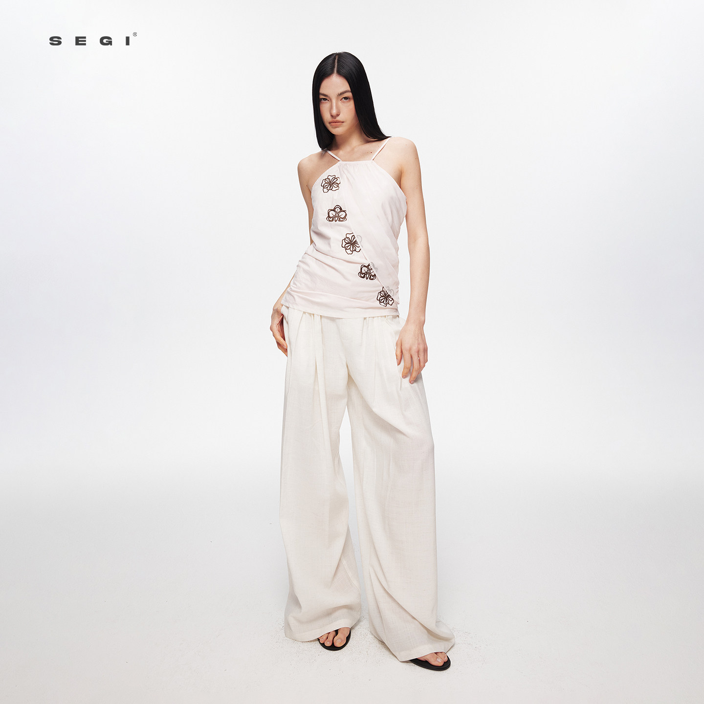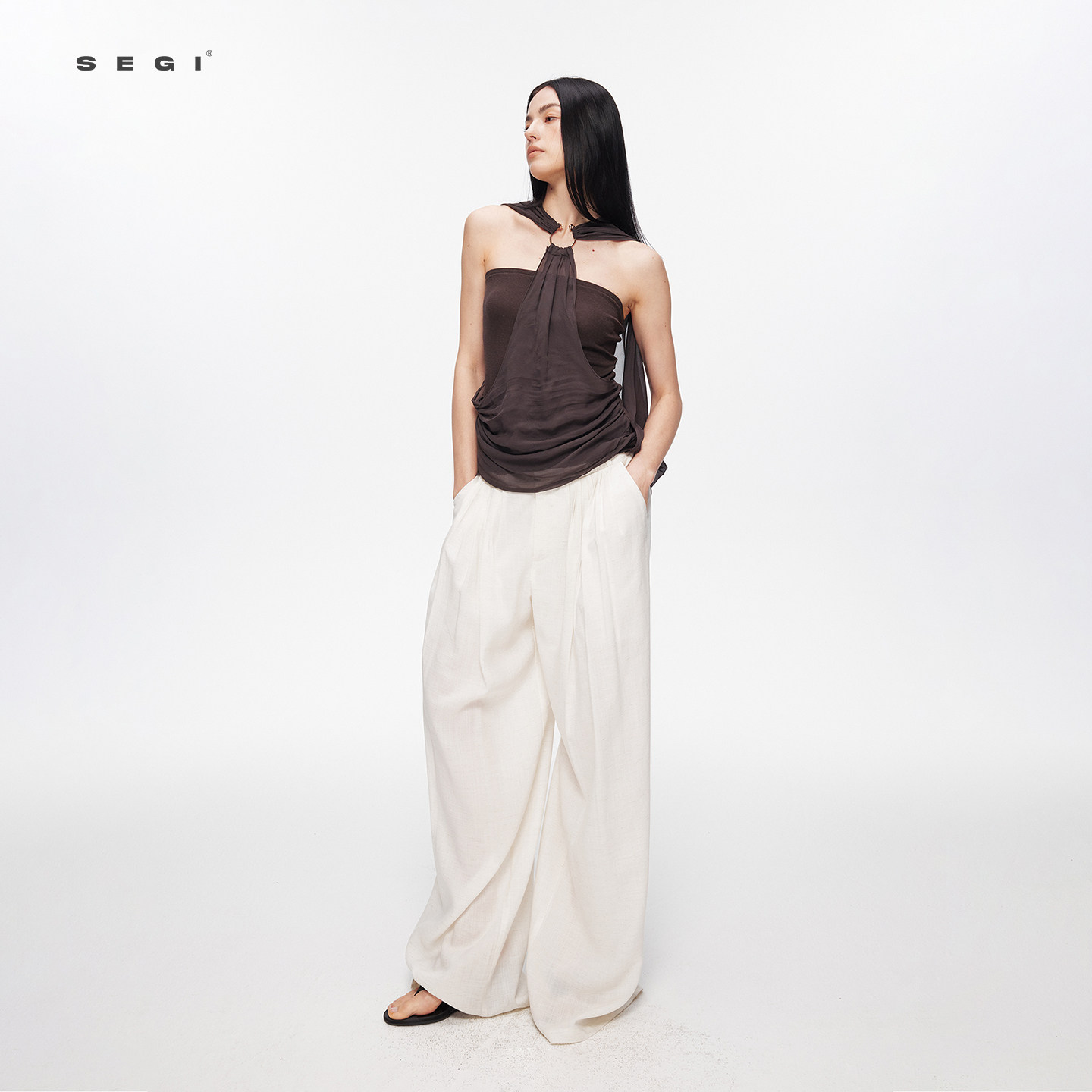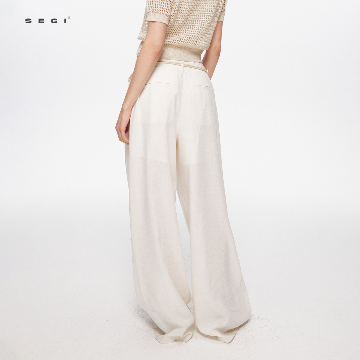 SEGI 天丝亚麻杂色双腰头捏褶垂感阔腿休闲裤女显瘦百搭长裤子女