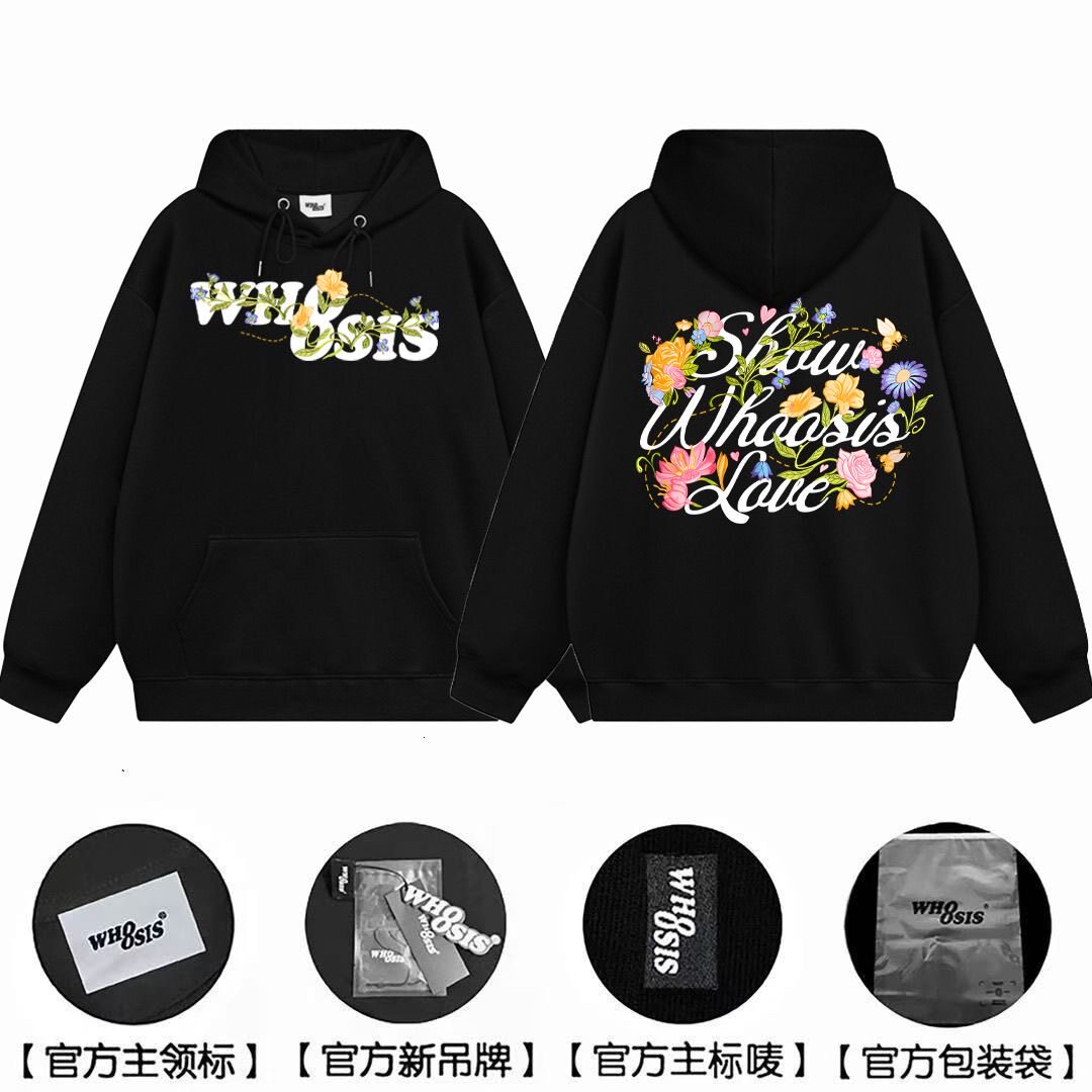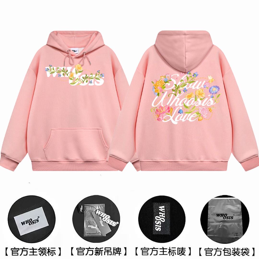 WHOOSIS BANG国潮牌花卉字母连帽卫衣男女秋冬加绒宽松情侣帽衫