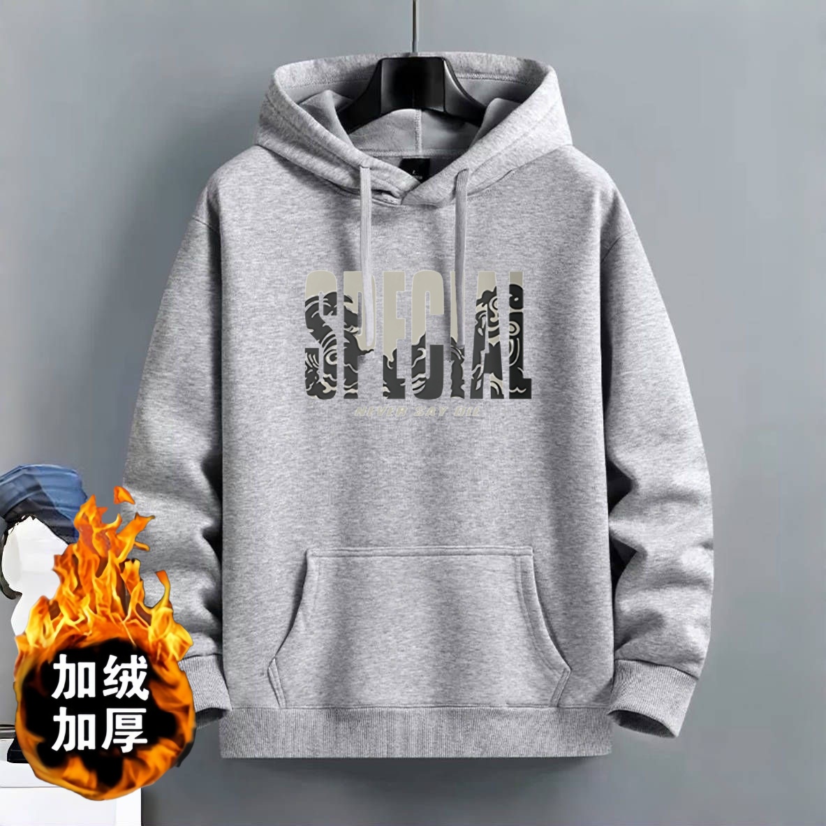 首页> 男装> 美式春秋冬季加绒加厚卫衣男士宽松连帽上衣国潮男装休闲外套男生