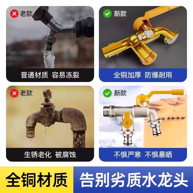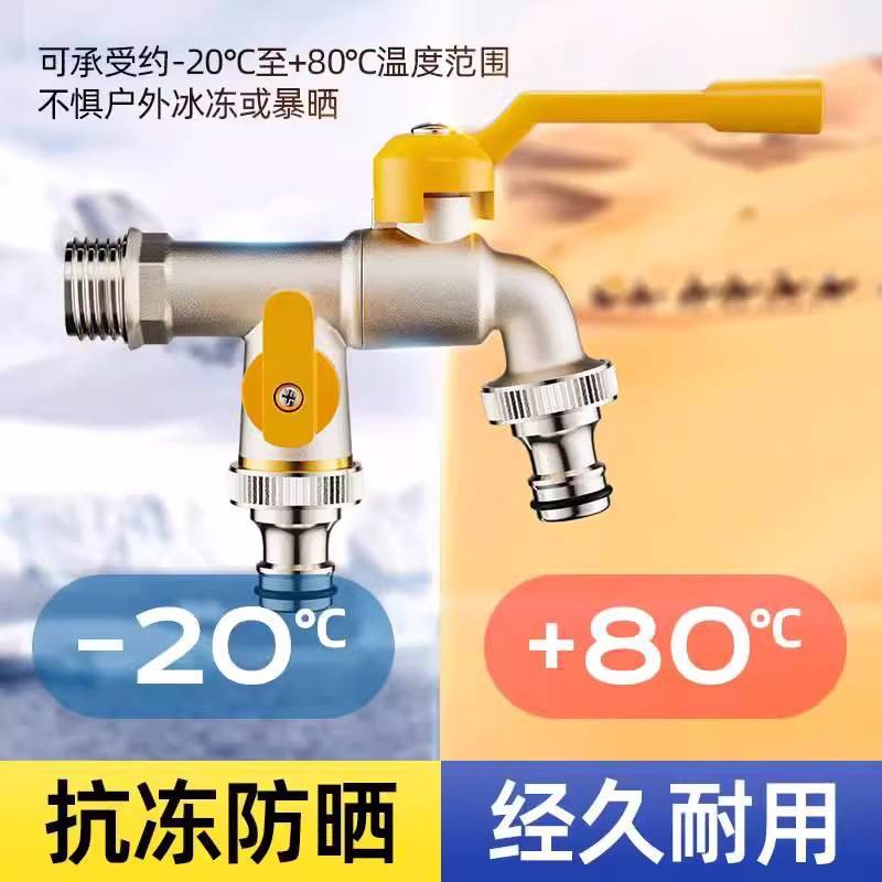 全铜户外水龙头家用防冻球心一进二出洗衣机双出室外带锁热水龙头