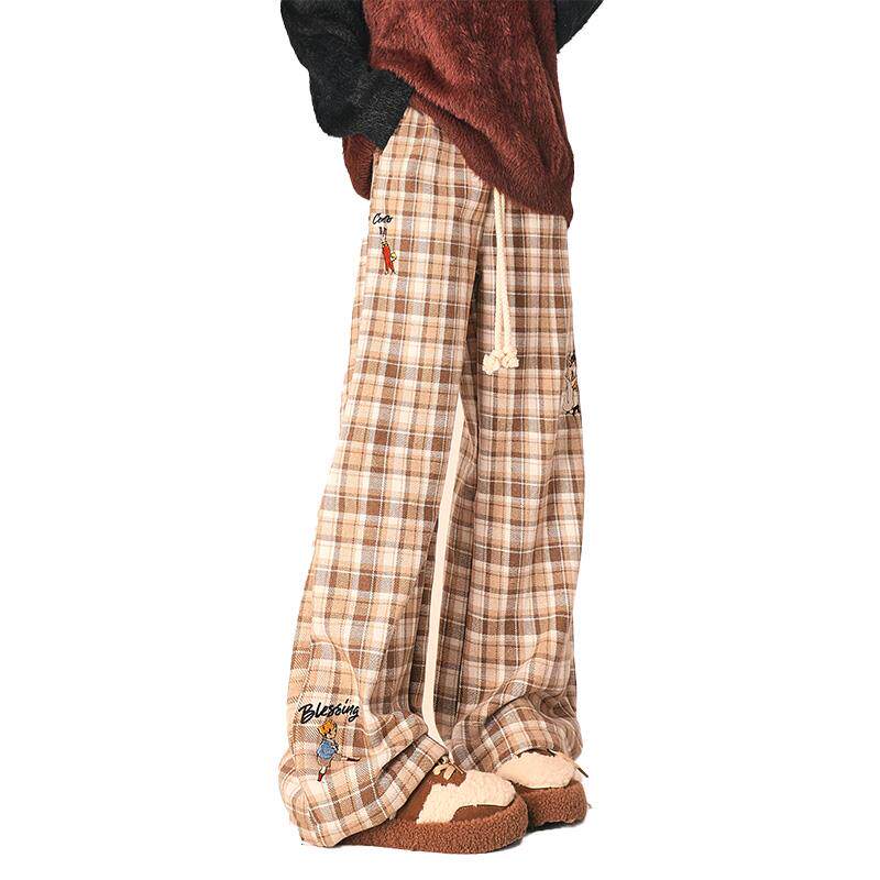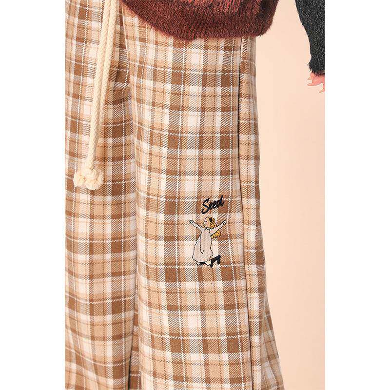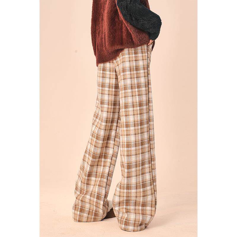 自然涩棕色格子休闲裤女2025夏季新款小个子阔腿裤子宽松bf慵懒风