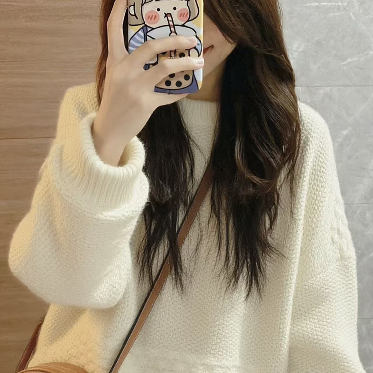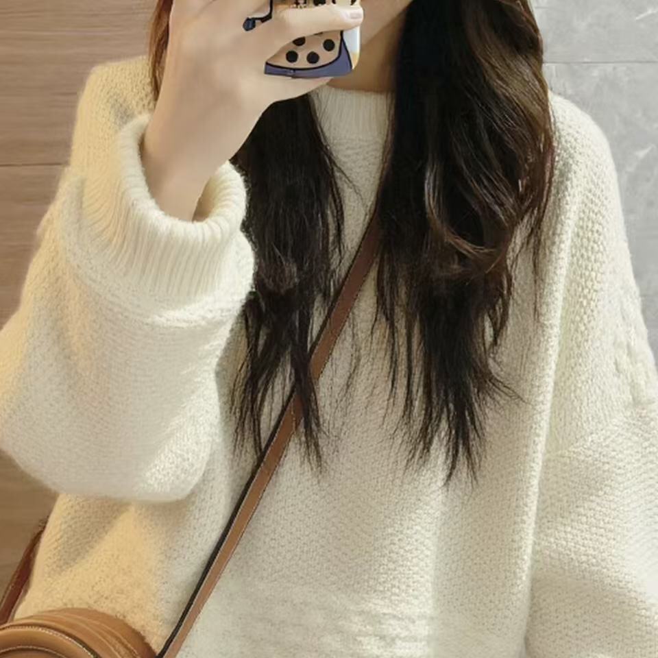 米白色套头毛衣女秋冬穿搭2025新款高级感慵懒风奶呼呼针织衫上衣