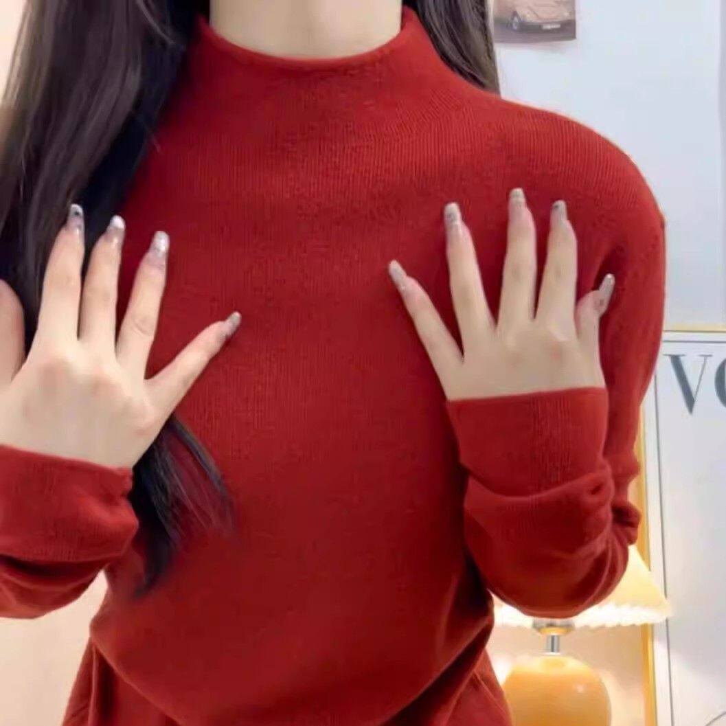 超火减龄安哥拉红显白内搭打底衫女秋冬毛衣半高领长袖针织衫上衣