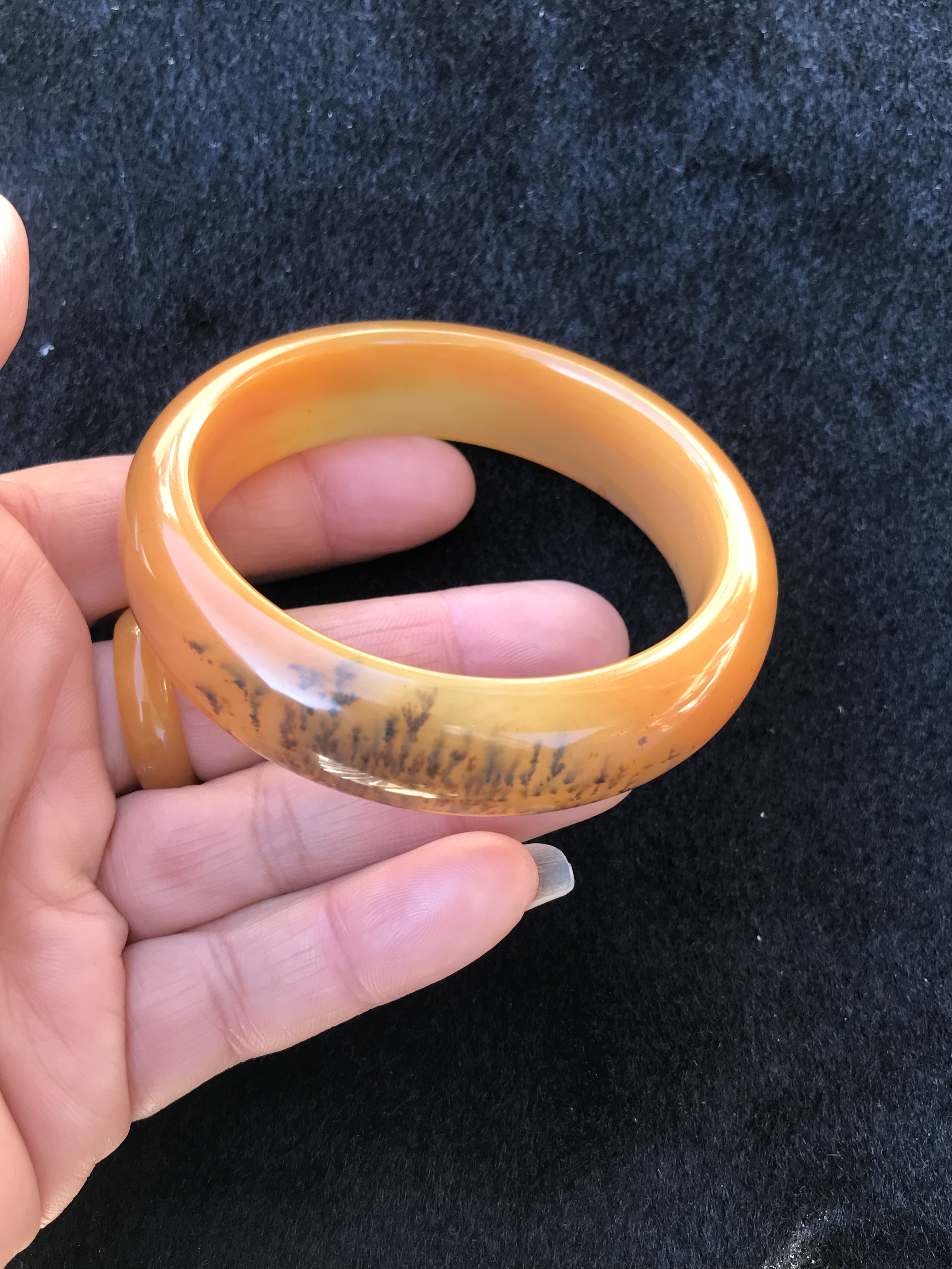 云南龙陵天然黄龙玉水草花老料手鐲56*16*9mm材质油润细腻