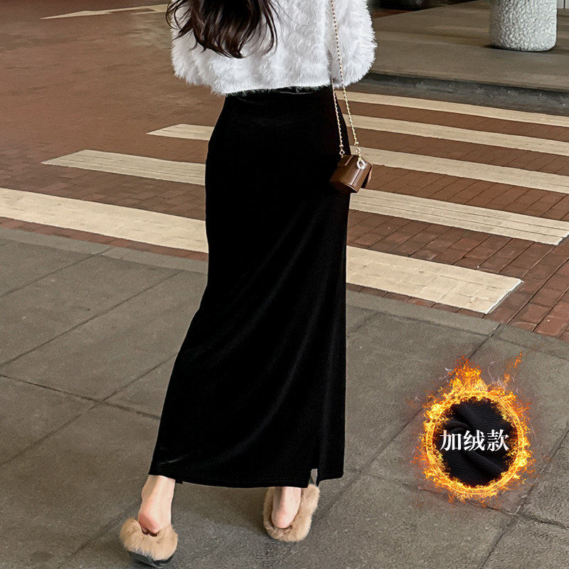 加绒裙子女秋冬金丝绒半身裙2025新款高腰半裙丝绒长裙直筒一步裙