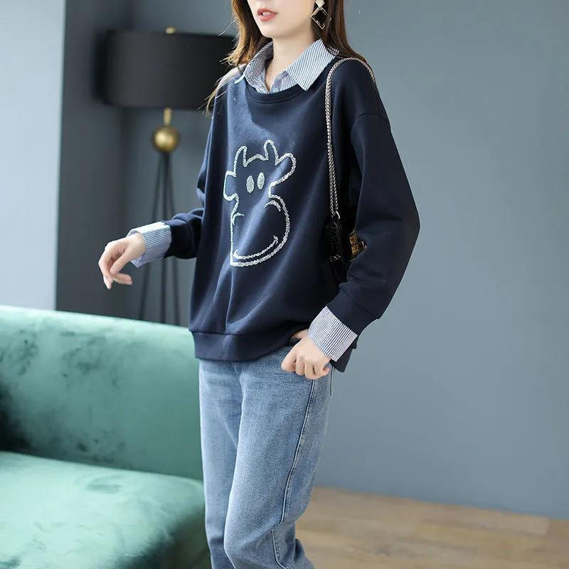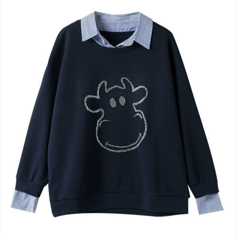 2025秋冬季假两件绒衫女装POLO领女式卫衣衬衫领上衣加厚春款加绒