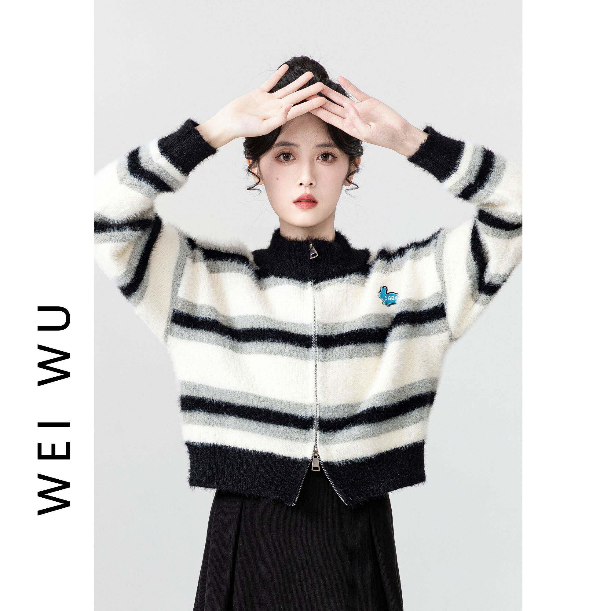 马海短款毛开衫毛衣女秋新冬季2024款加厚纹水XJM1FA04貂绒拉链条