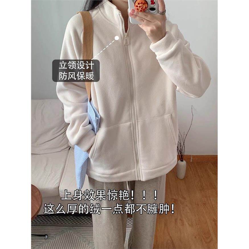 摇粒绒立领卫衣加绒加厚外套女2025新款冬季冲锋衣内胆羊羔毛上衣