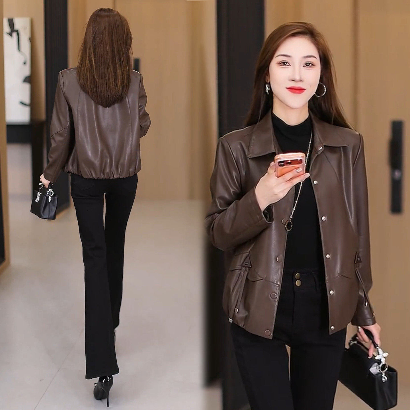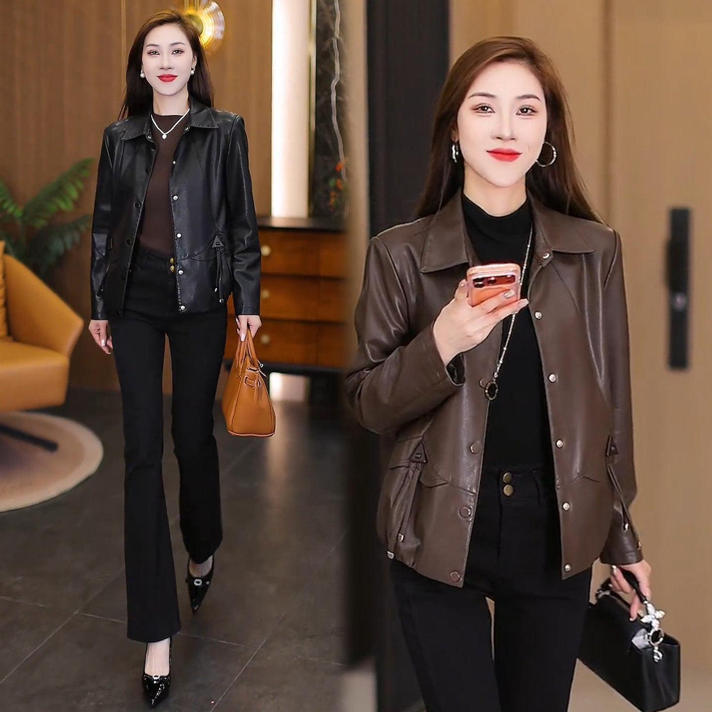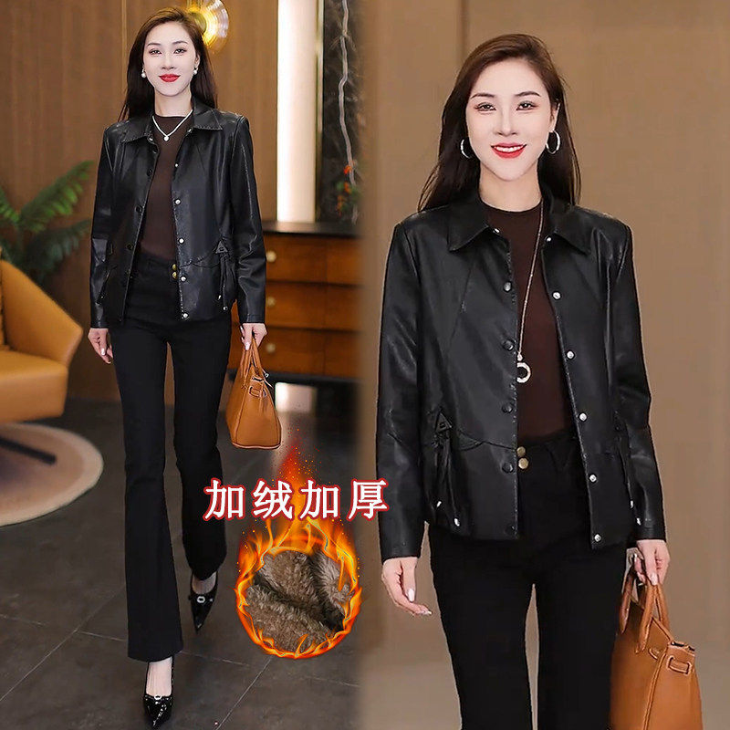 加绒加厚皮衣外套女款新款秋冬季今年流行爆款短款黑色夹克小个子