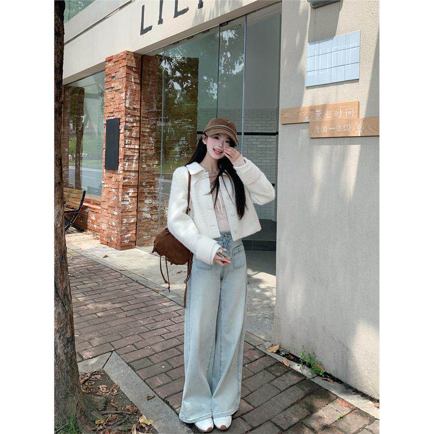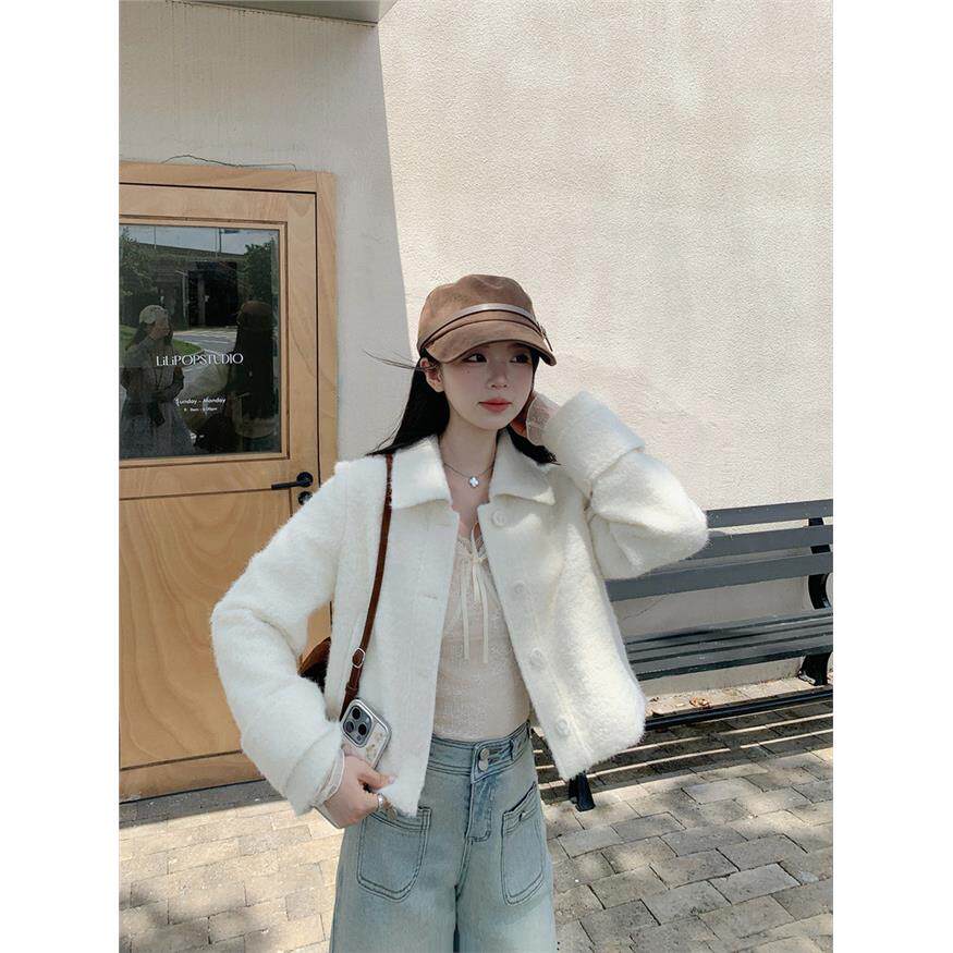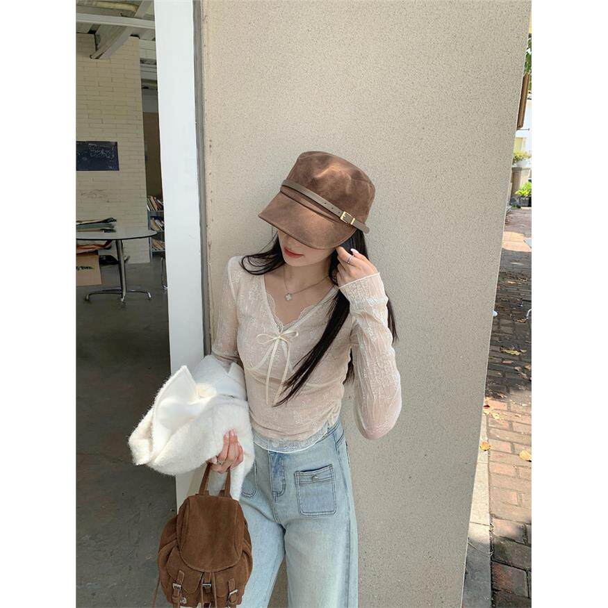 切糕自制小个子秋季上衣女设计感蕾丝百搭奶油杏长袖V领针织衫