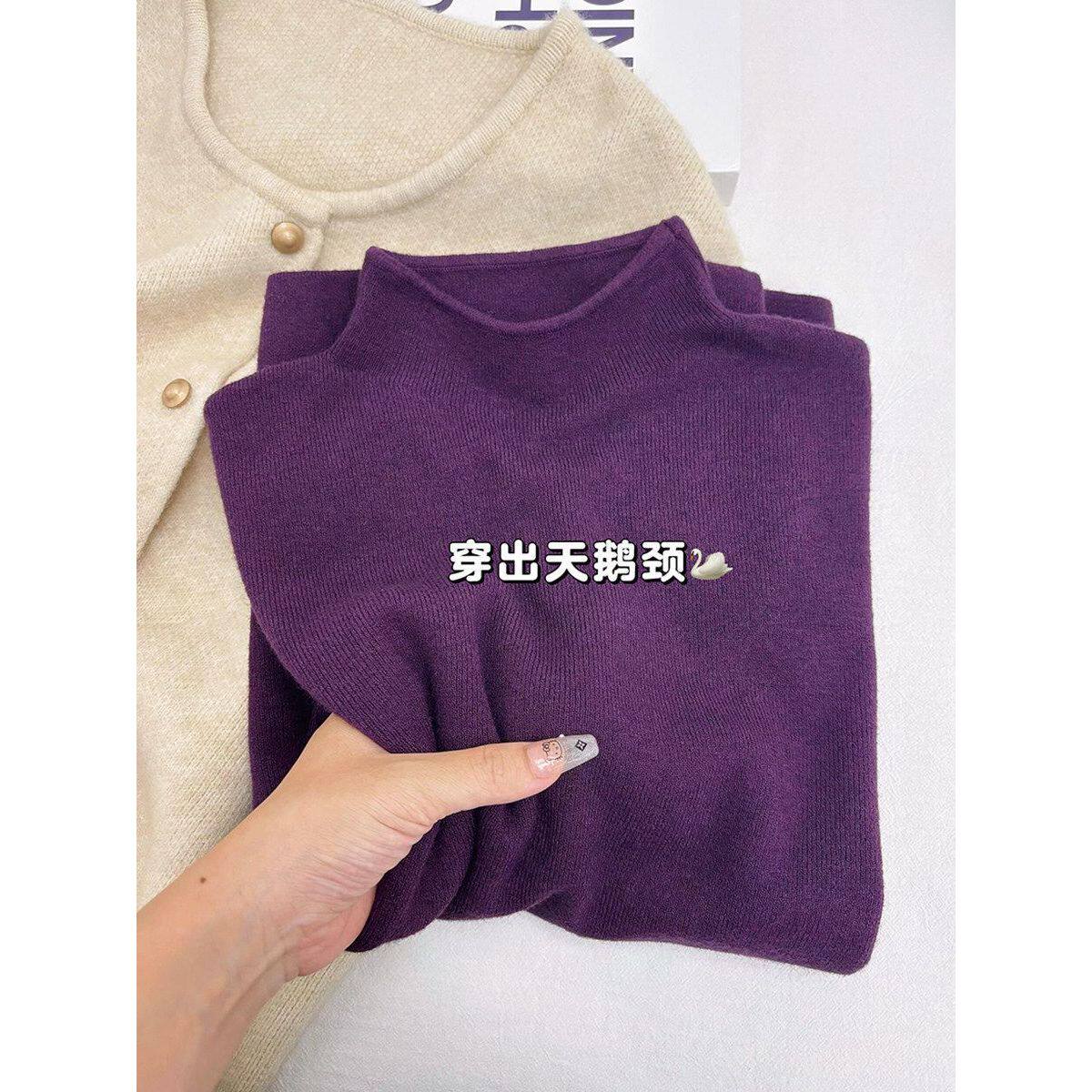 2026新款修身显瘦软糯高级感葡萄紫色半高领针织长袖打底衫上衣