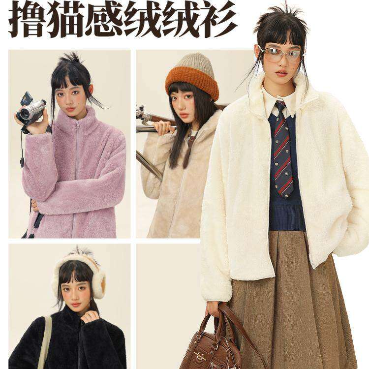 回力摇粒绒外套女秋冬季2025新款蓝色抓绒内胆加厚毛毛加绒卫衣J