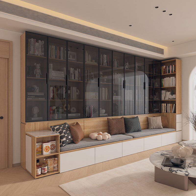定制去客厅书柜一体整墙带边柜沙发储物柜卡座尺寸定做书橱书架子