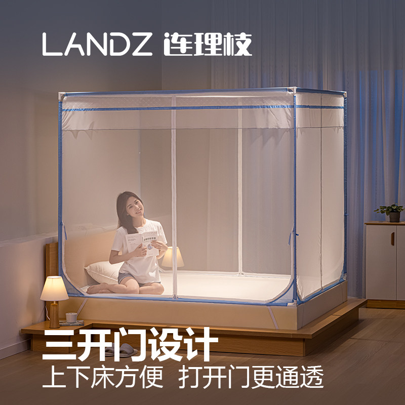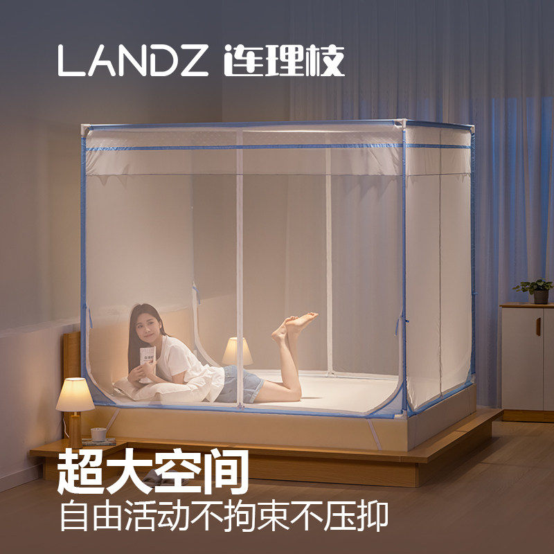 蚊帐家用2023支架1.8m/儿童防摔坐床加密加厚新款拉链卧室A类纹账