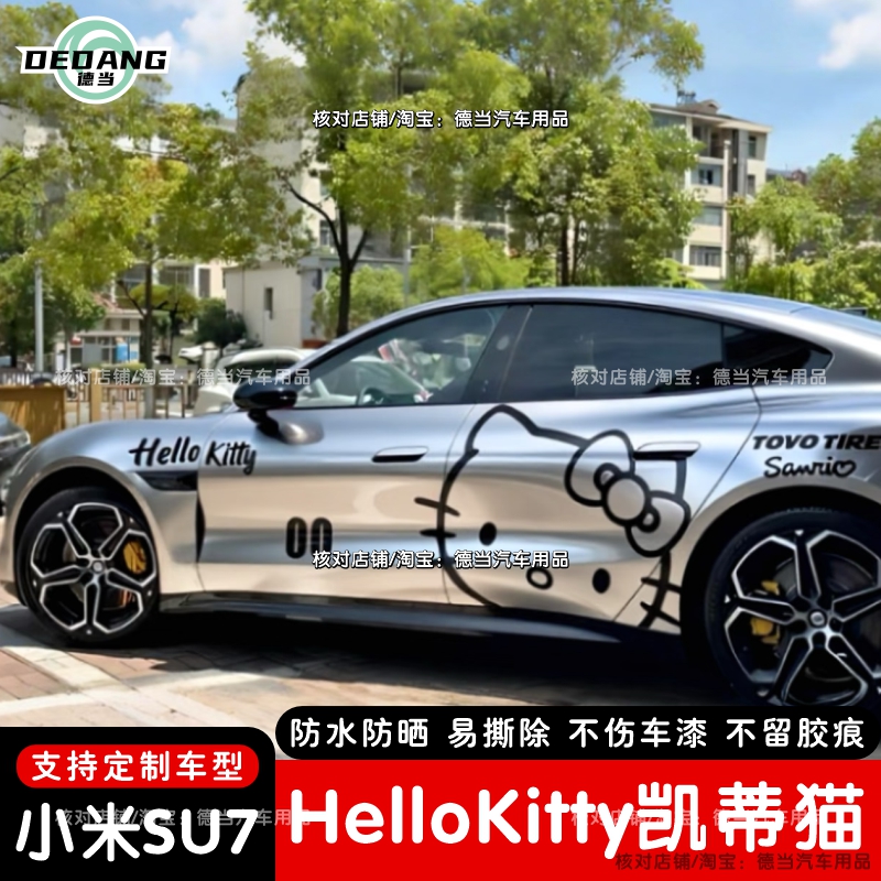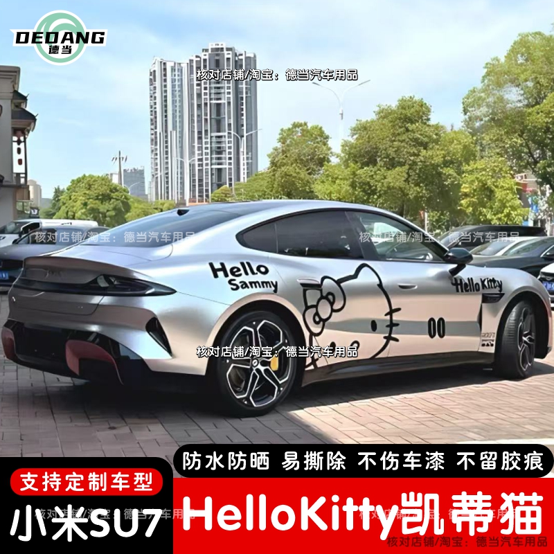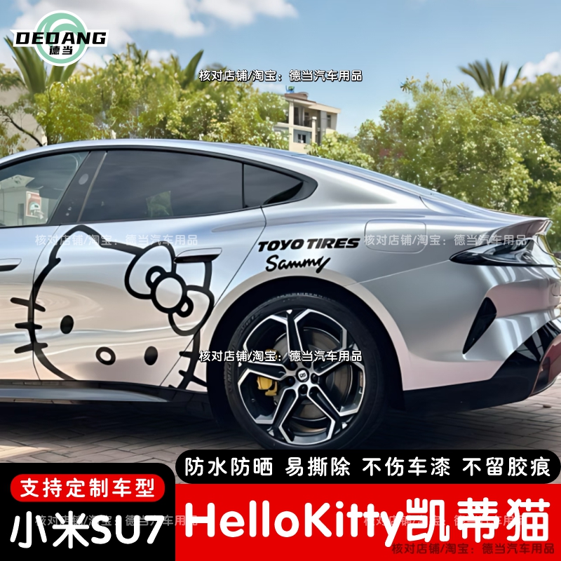 适用小米SU7车贴纸车身两侧Hello Kitty凯蒂猫个性创意卡通可爱贴