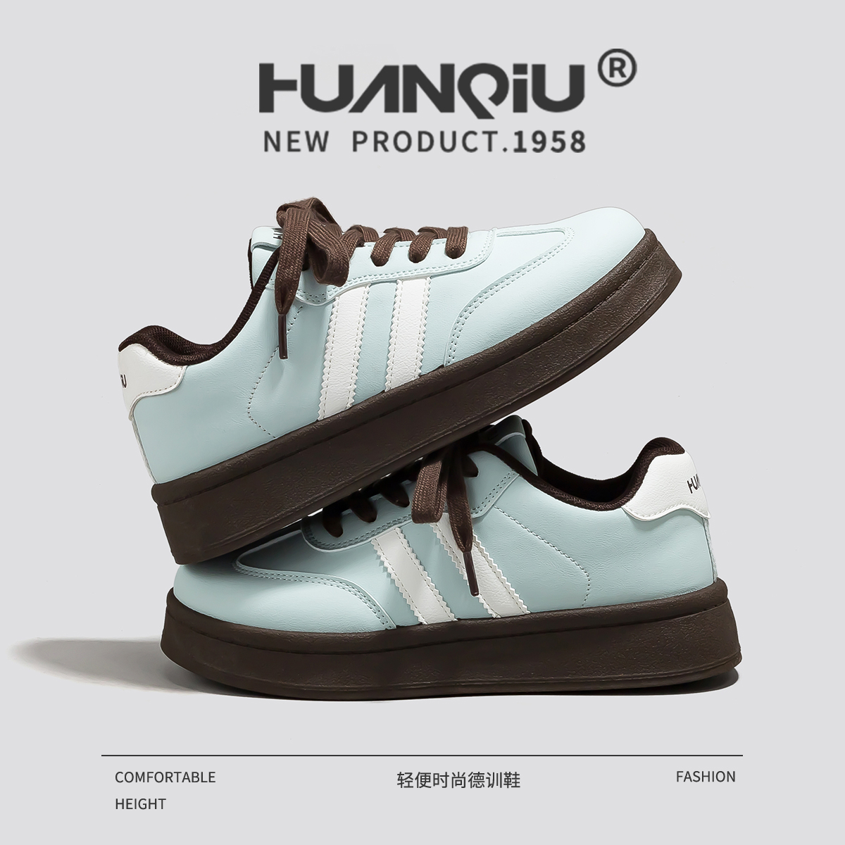 环球德训鞋女2025秋季百搭新款舒适软底板鞋湖蓝轻便薄底休闲女鞋
