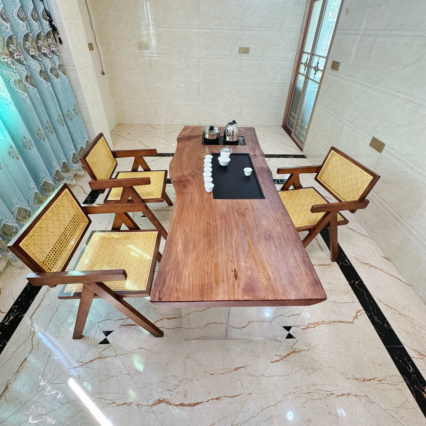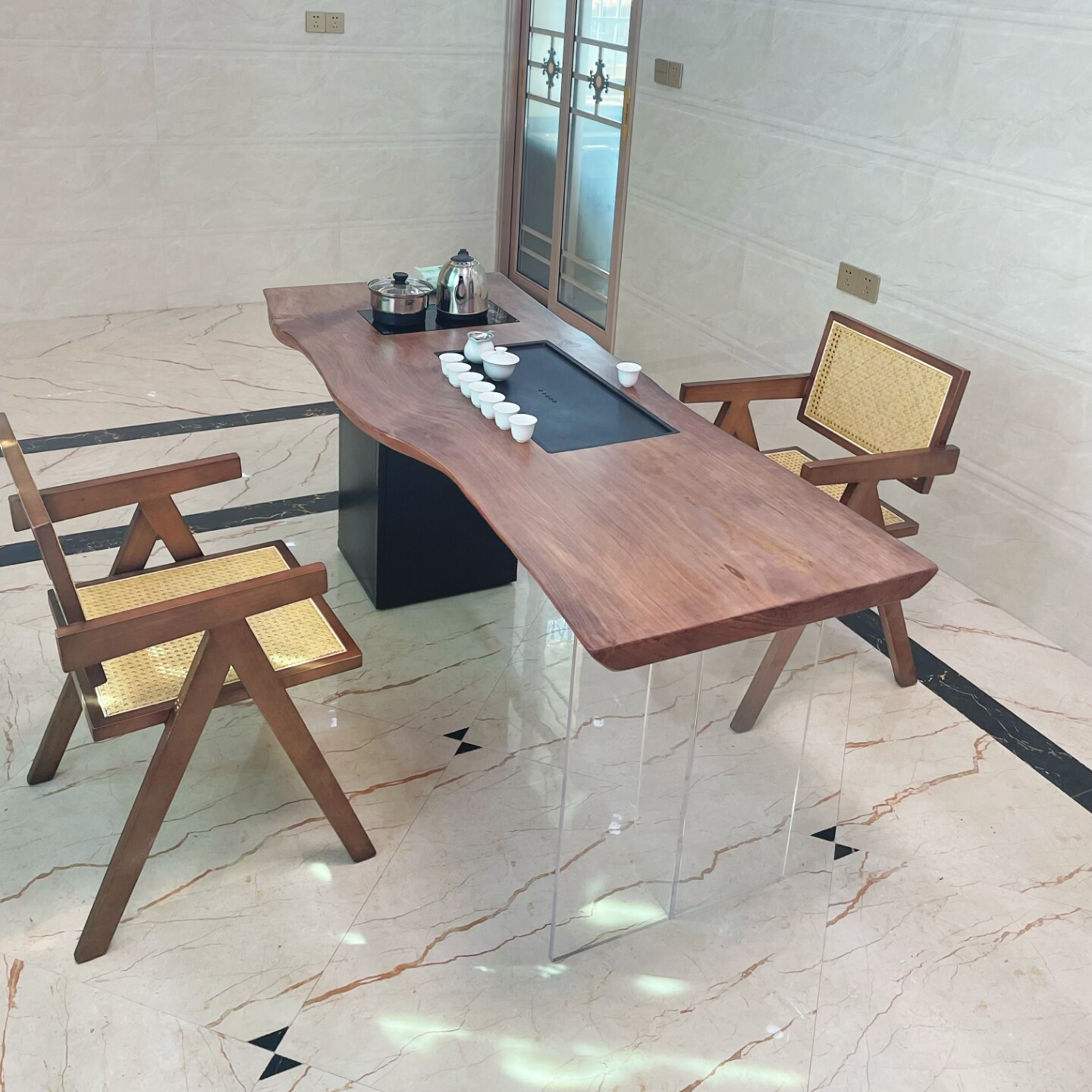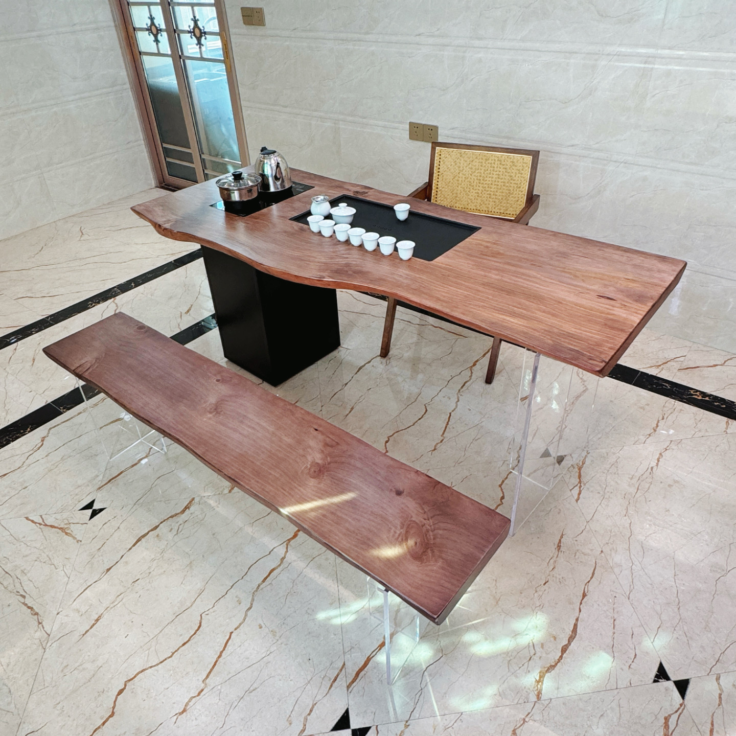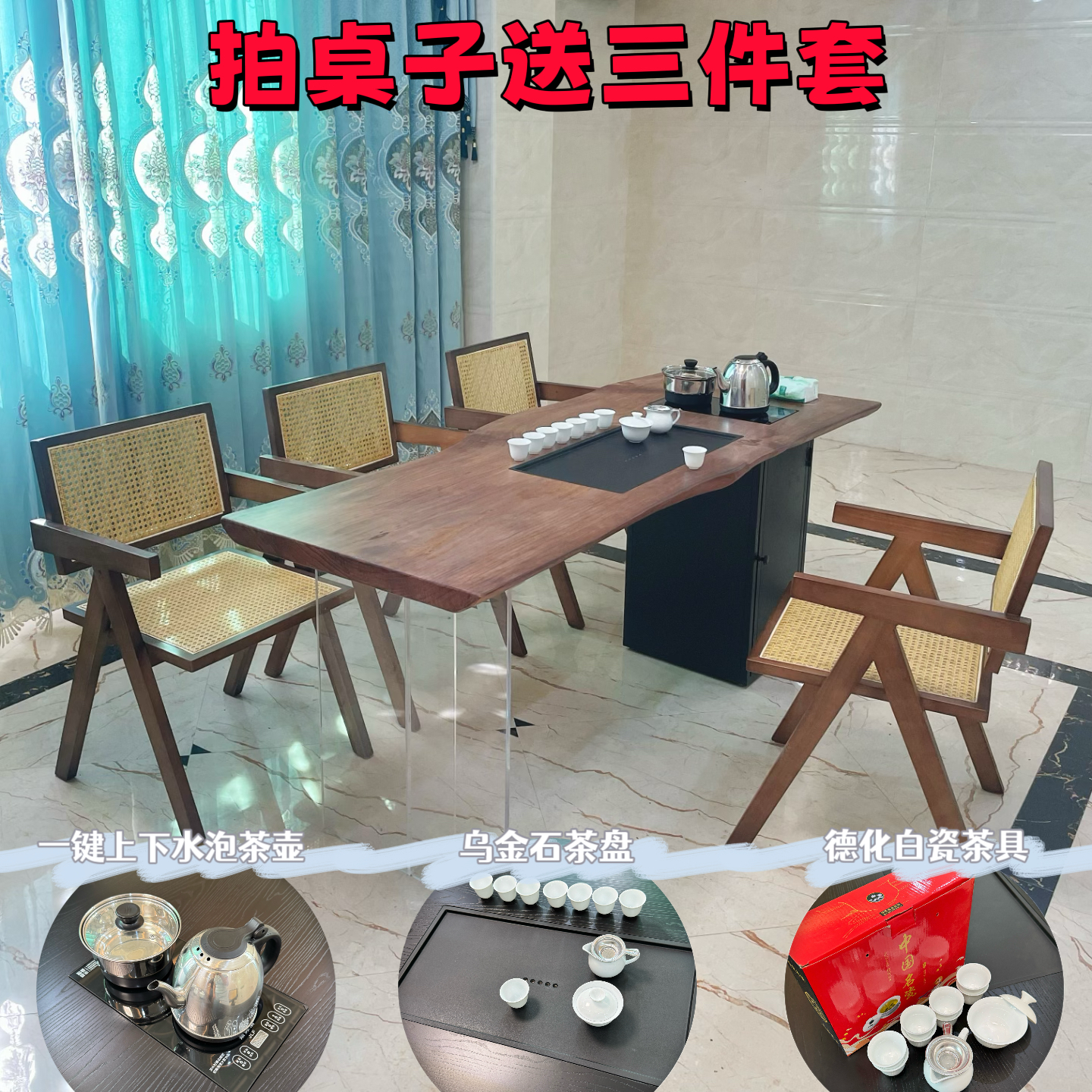 黑胡桃木色大板整板茶桌设计师高端酒店民宿别墅烧水壶一体泡茶台