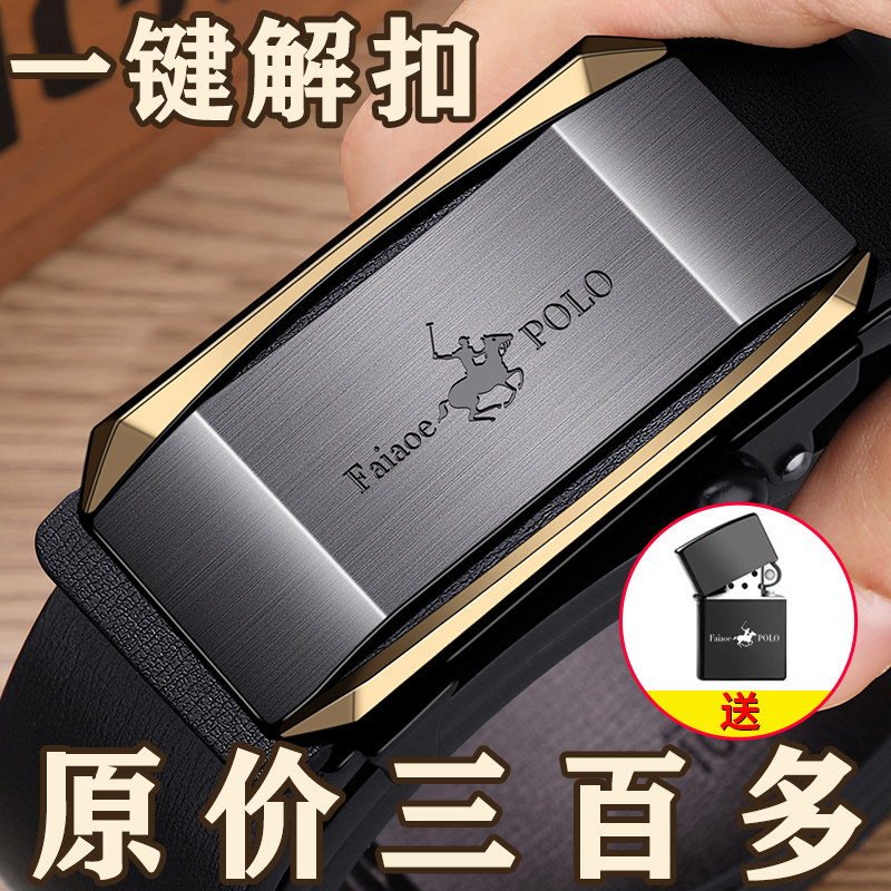 官方正品纯牛皮男士款皮带真皮腰带内穿自动扣年轻人潮流百搭裤带