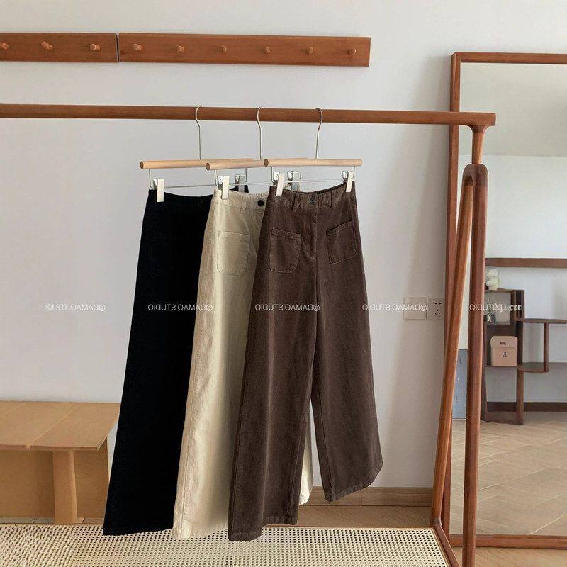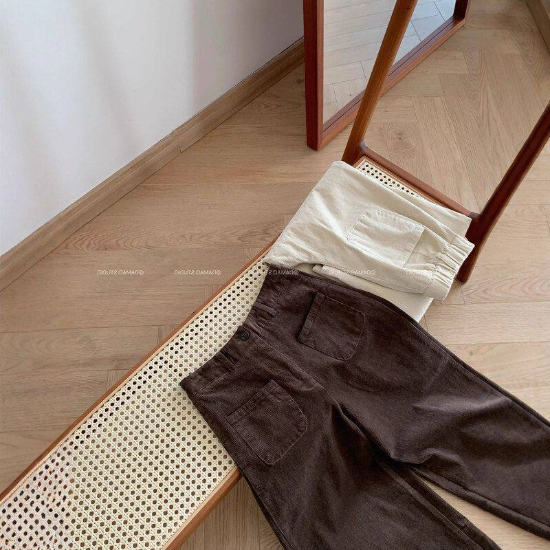 2025秋季新品韩系复古灯芯绒裤子女高腰显瘦百搭直筒长裤梨型身材