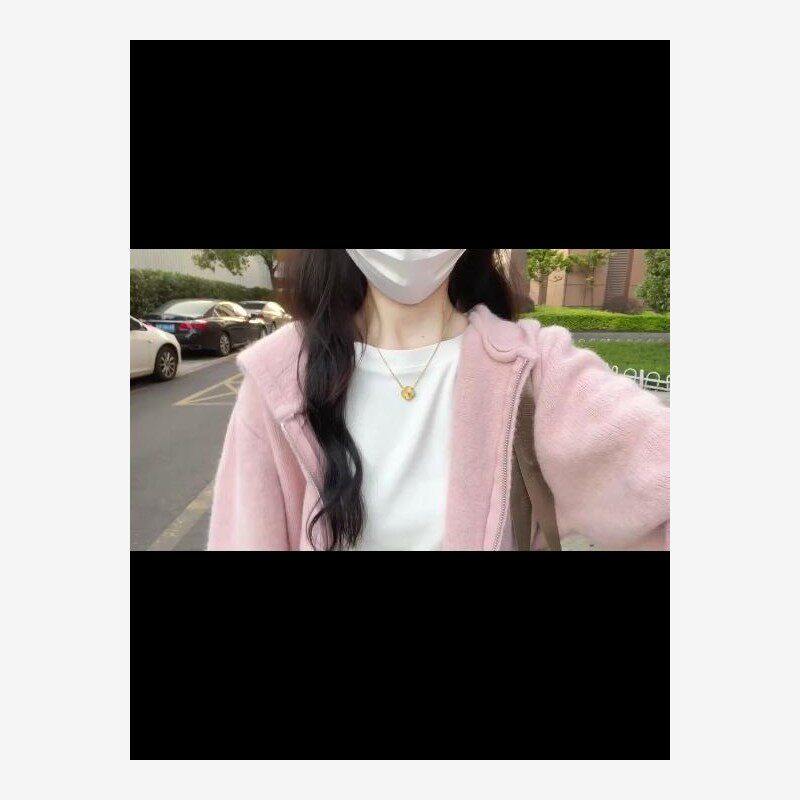 粉色连帽针织衫上衣女秋冬2024春季拉链慵懒软糯外搭毛衣开衫外套