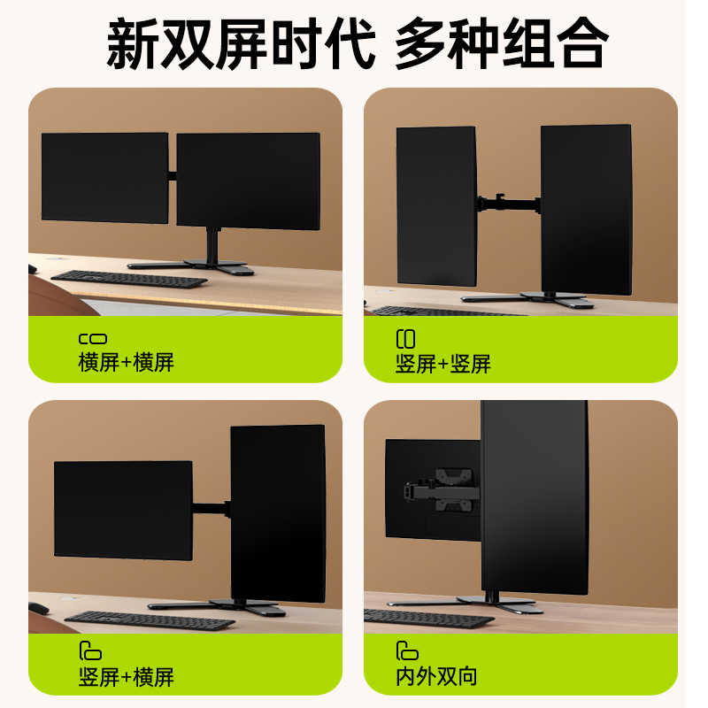 置简显示器支架臂架免打孔旋转双屏底座电脑屏幕万能升降增高架子
