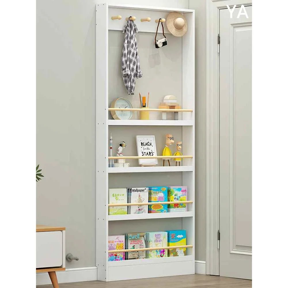 置物架实木门后落地架夹缝超薄书架收纳架白色薄柜缝隙窄柜小新款