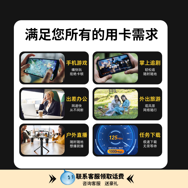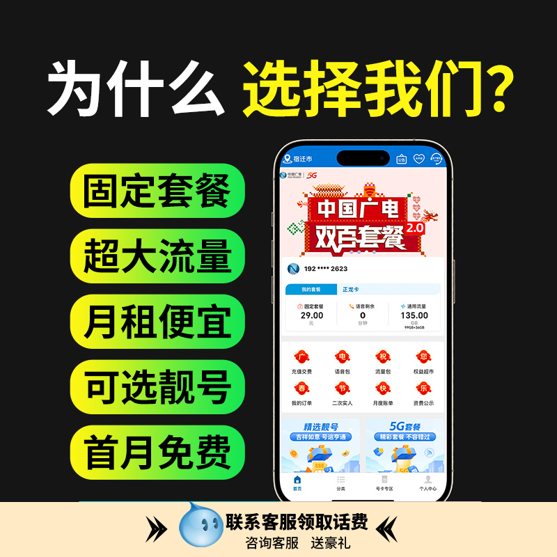 大流量卡纯流量上网卡广电流量卡无线限量全国通用大王卡中国广电