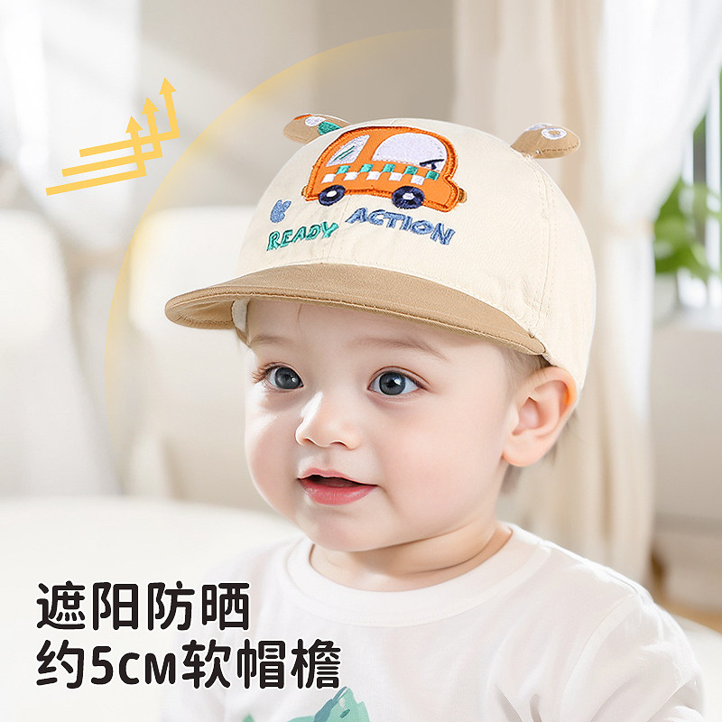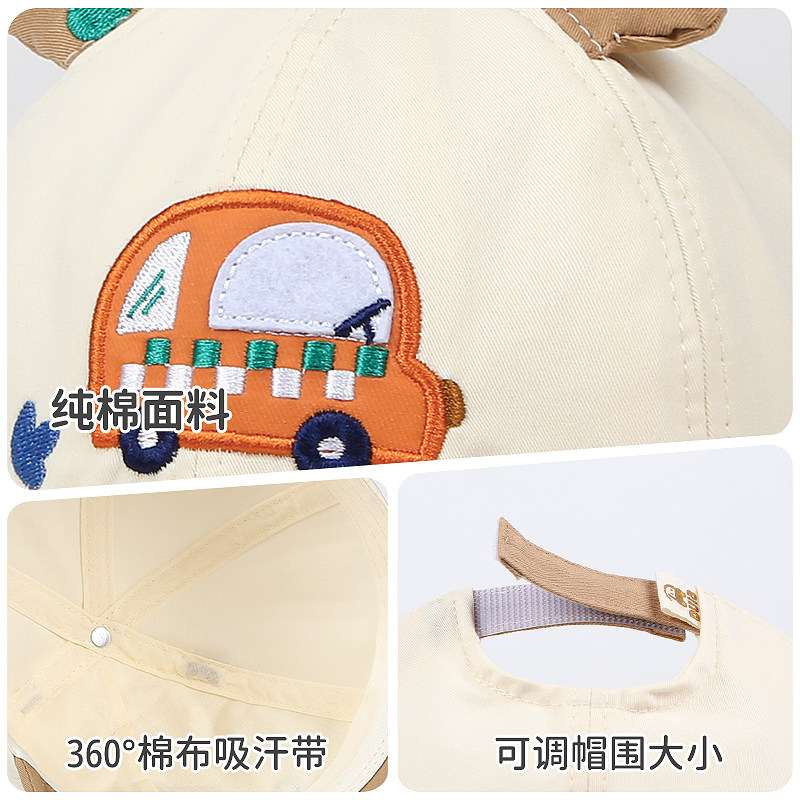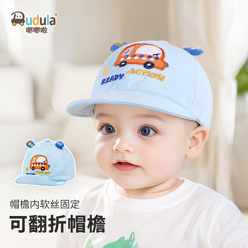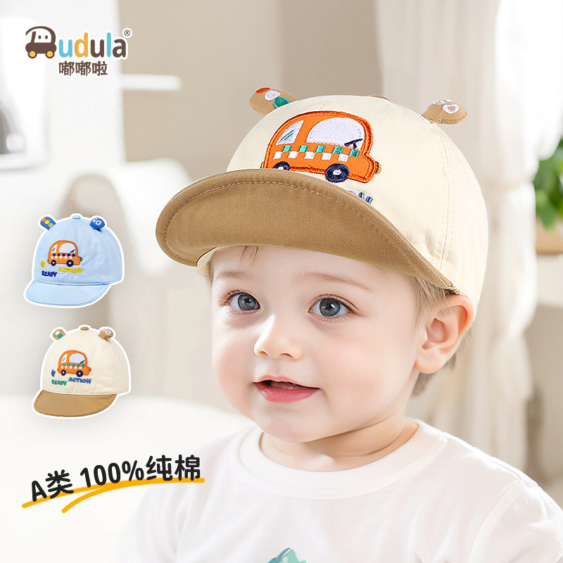 嘟嘟啦春季宝宝纯棉布鸭舌帽儿童软帽檐小汽车帽子小孩户外棒球帽