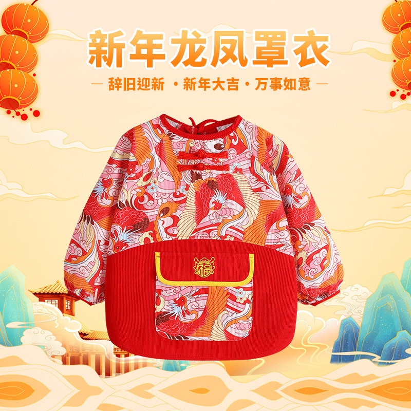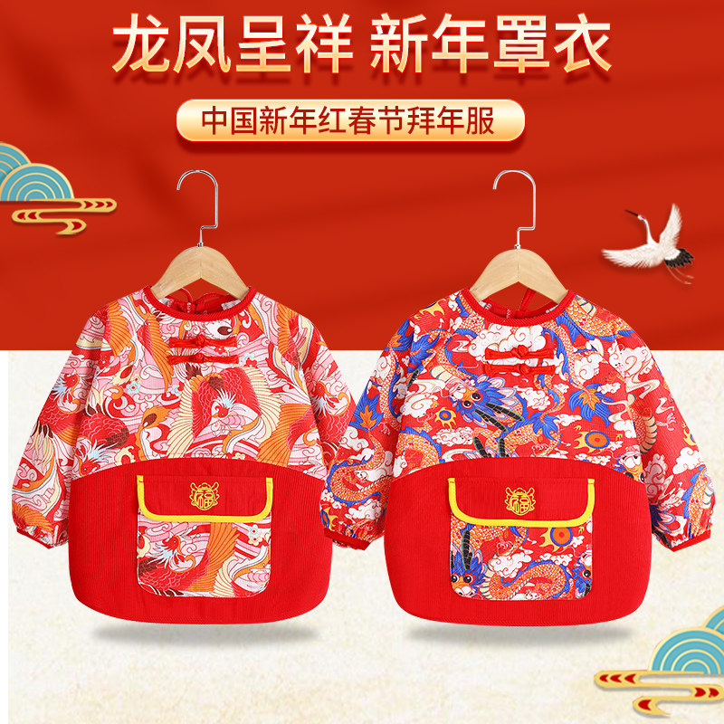 儿童罩衣唐装中国风宝宝反穿衣防脏婴幼儿围兜男女童拜年服护衣