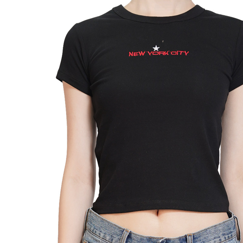 BF短袖女2024夏季新款印花刺绣五角星短T恤修身百搭今年流行上衣