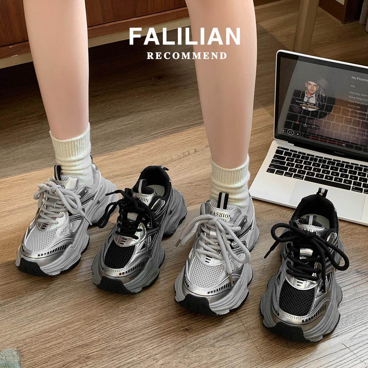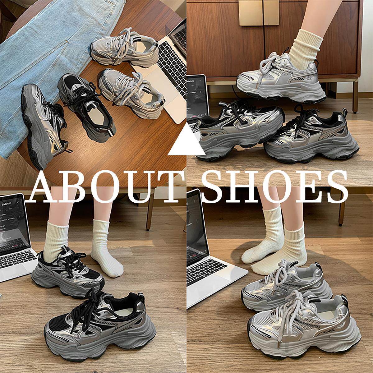 老爹鞋女黑色鞋子2024新款爆款春秋季百搭松糕厚底增高休闲运动鞋