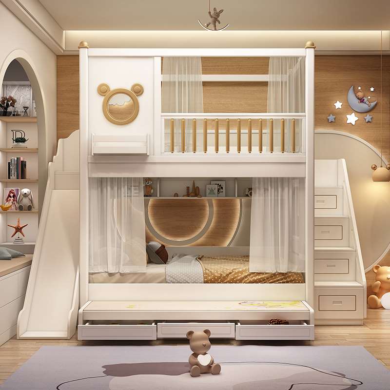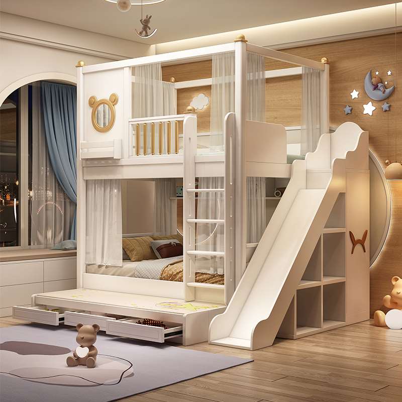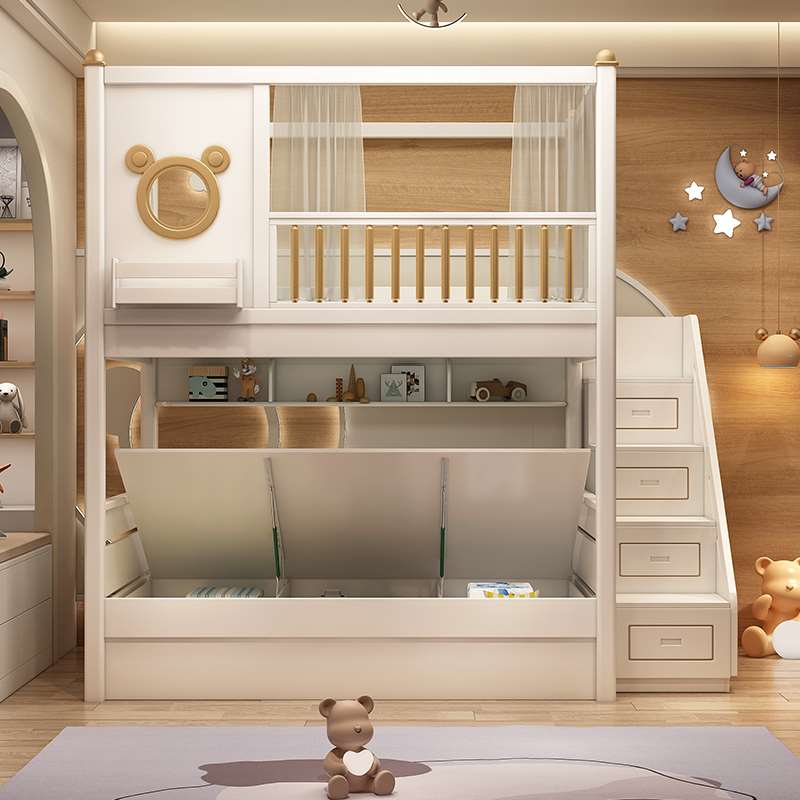 儿童上下床高架床上下铺高低双层两层上床下桌书桌衣柜一体组合床