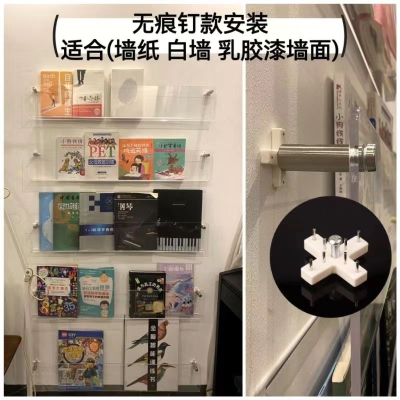 免打孔书架墙上壁挂报刊杂志儿童墙壁亚克力书本手办展示架置物架