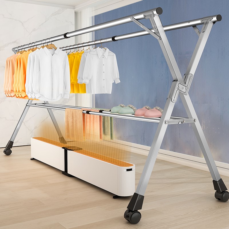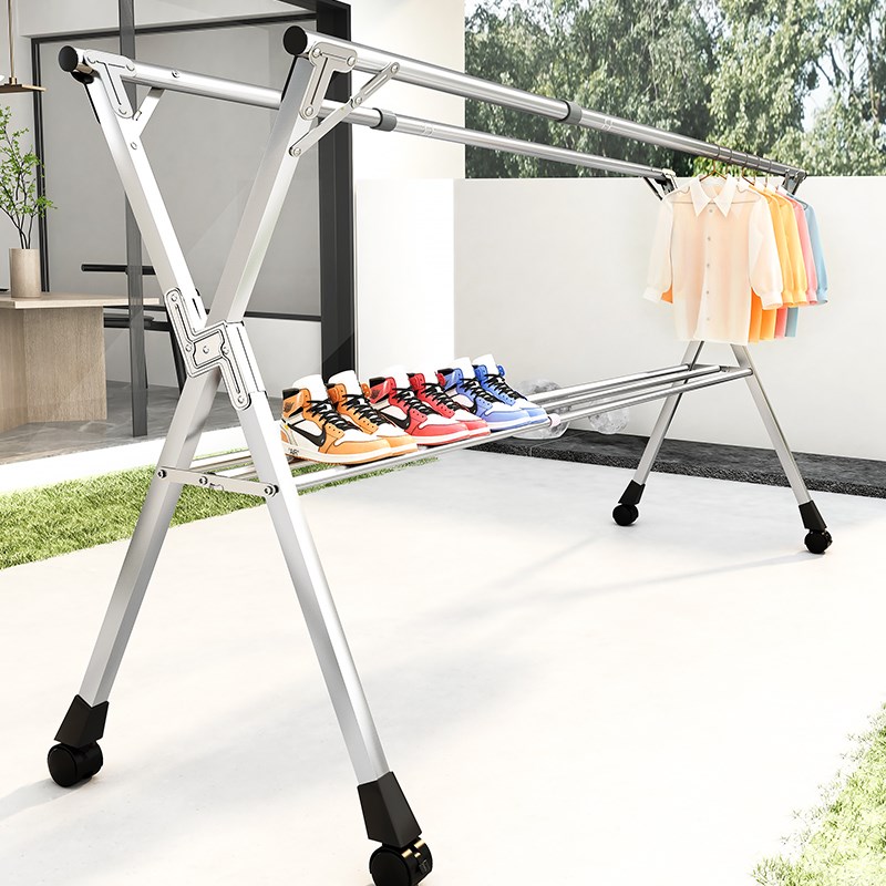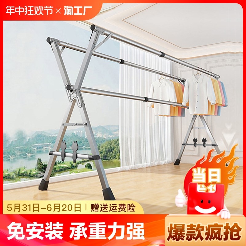 晾衣架家用折叠落地室内不锈钢衣架卧室外被子神器双杆三角收纳