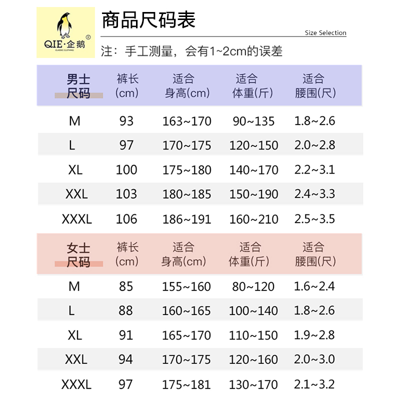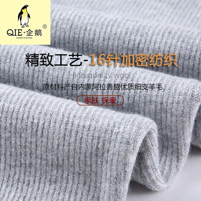 企鹅正品100%纯羊毛裤加厚男士保暖裤中老年针织毛线裤女士打底裤