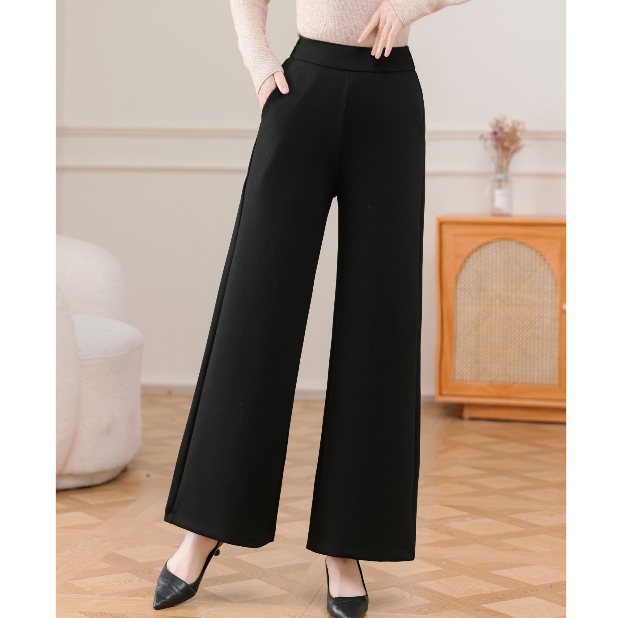 毛呢厚款宽松羊毛阔腿裤女秋冬高腰垂感显瘦抗皱长裤直筒休闲裤子