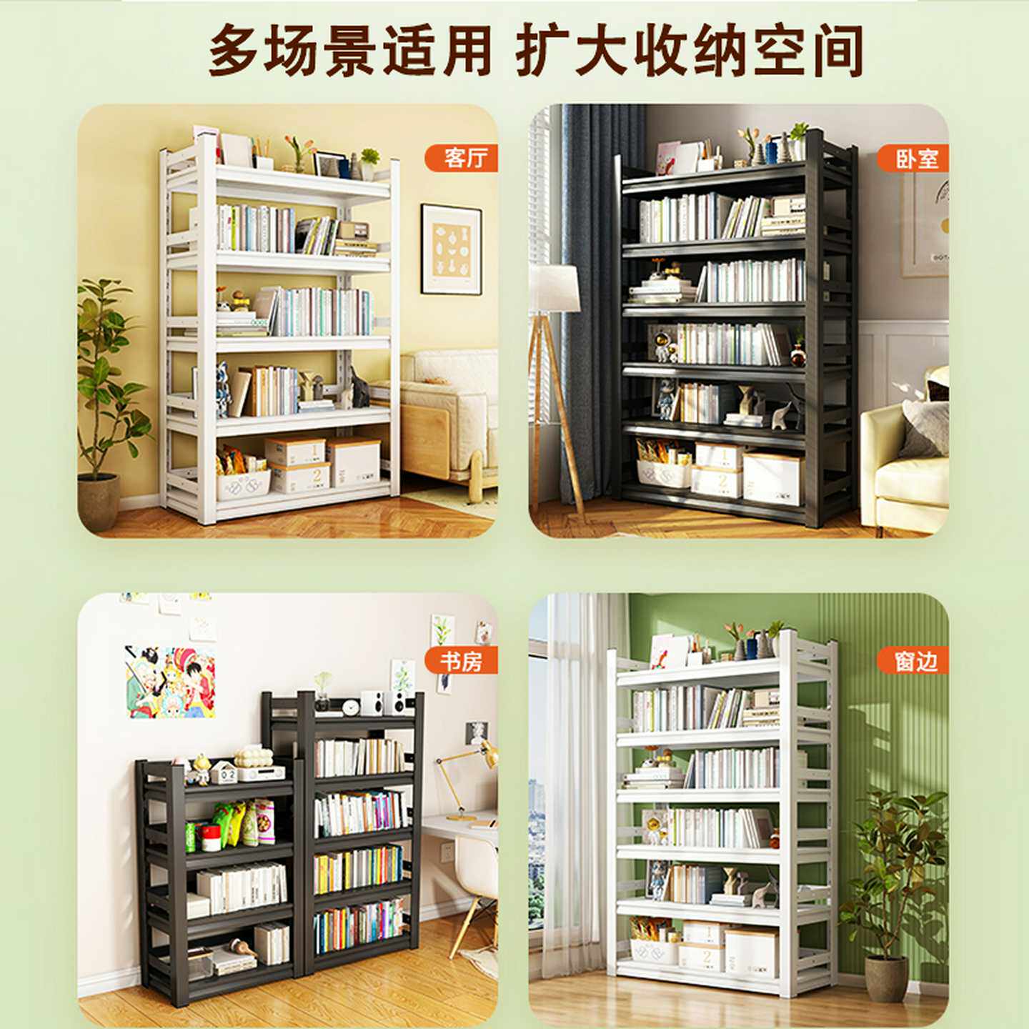 钢制书架围栏置物架多层落地家用客厅简易铁艺收纳架书籍储物