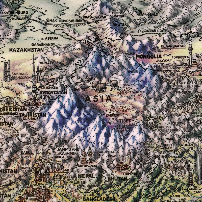 米开朗拼图1000趣味地图世界地理--立体版 成人儿童益智礼物玩具
