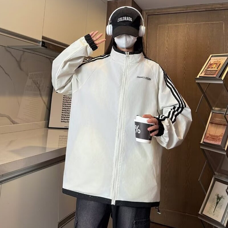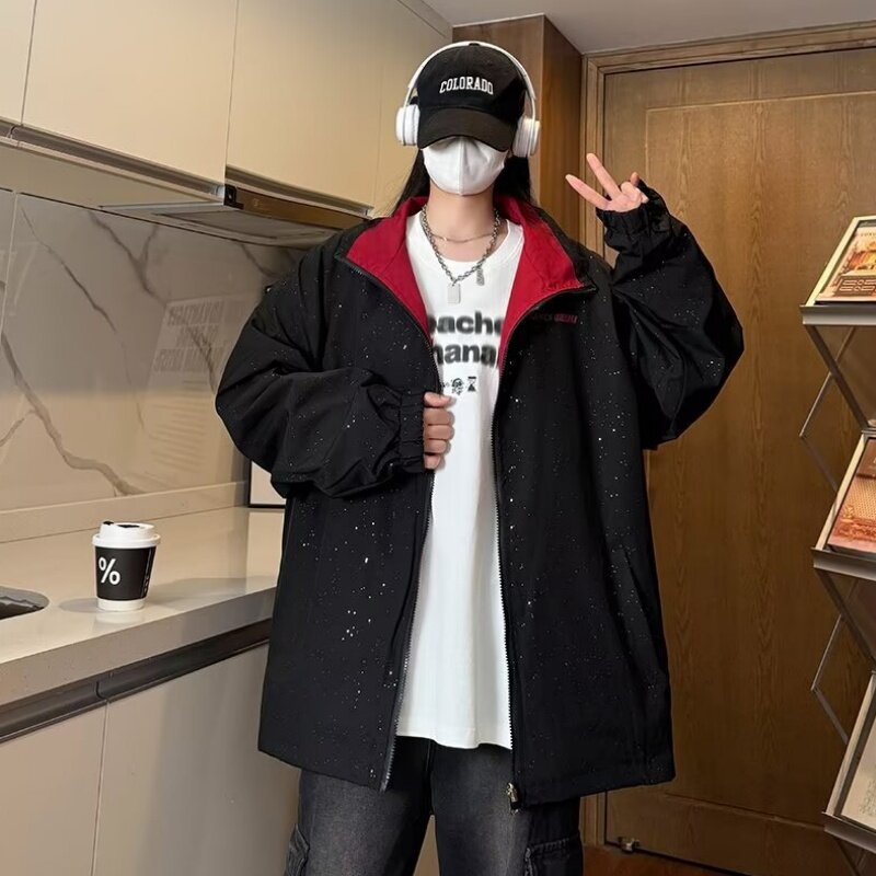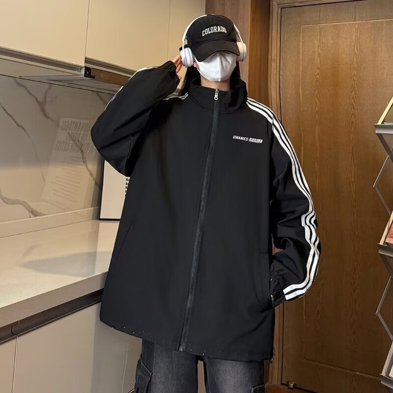 满天星两面穿情侣夹克男女同款春秋季时尚休闲百搭防风条纹冲锋衣