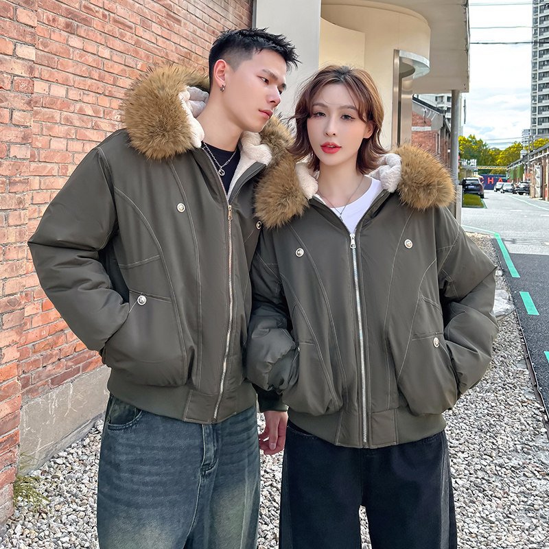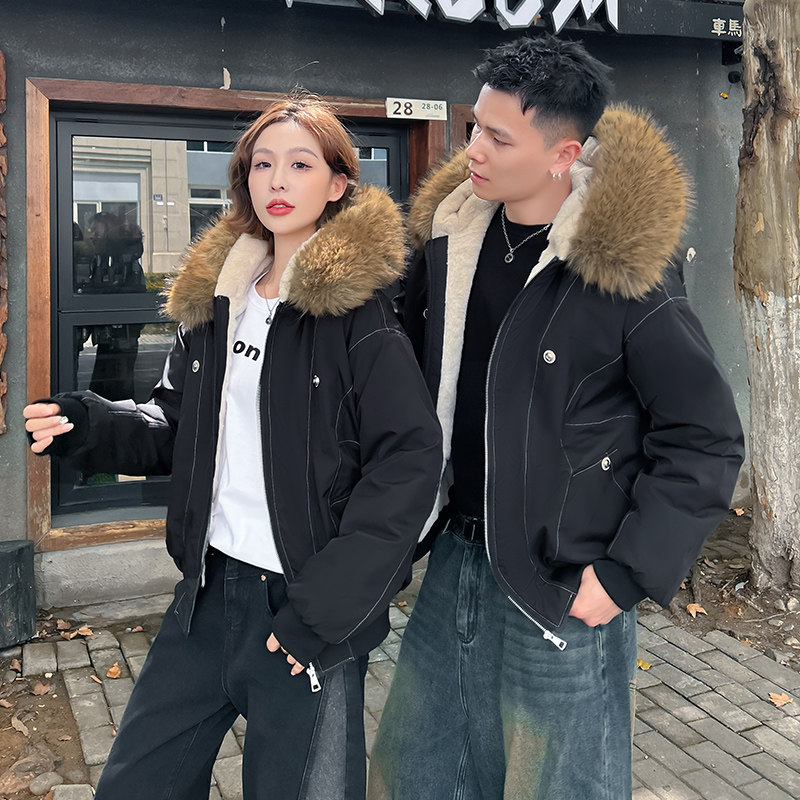 美式复古座山雕派克棉服设计感外套男女冬季毛领连帽短款加厚棉衣