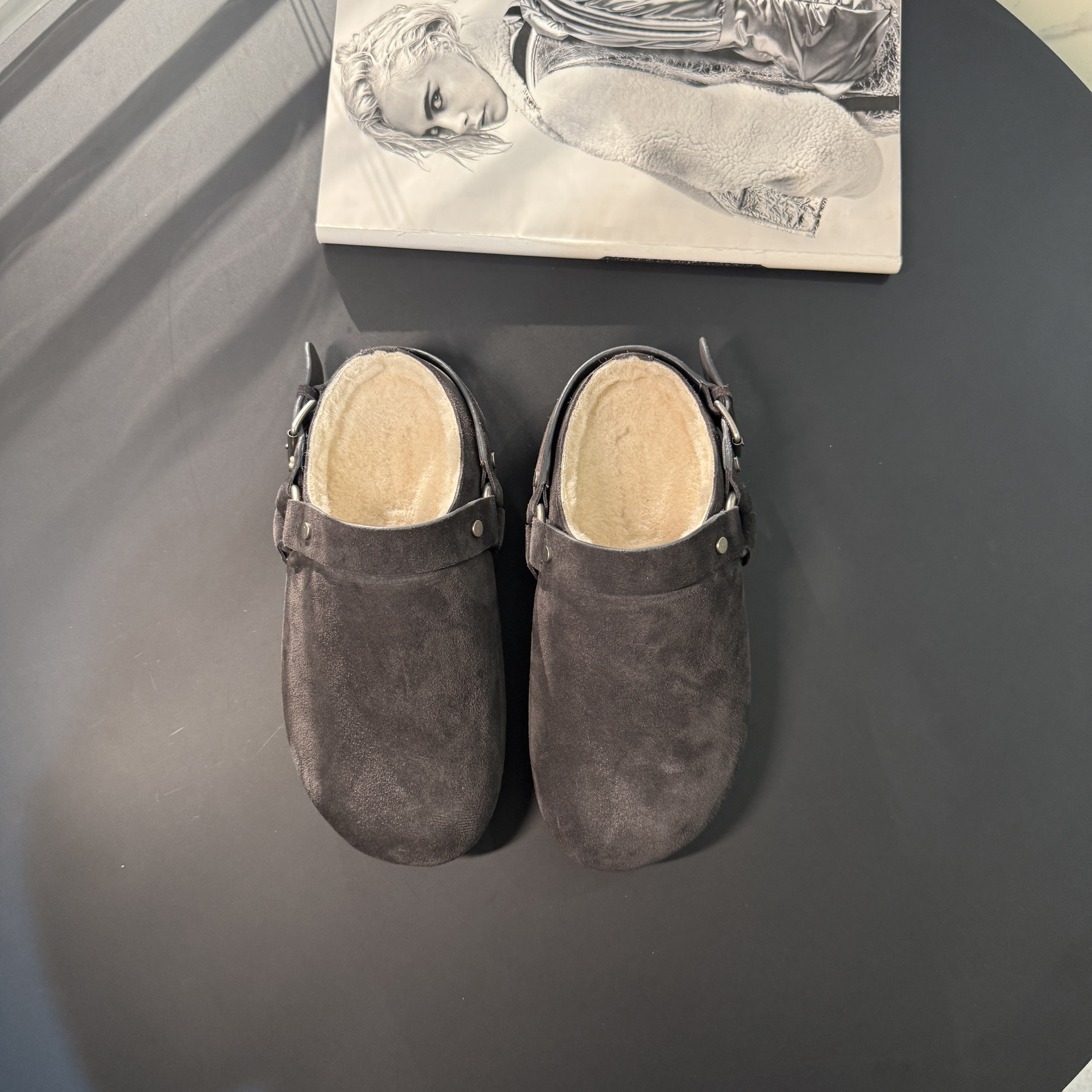 【老罗道歉场】EM2025秋冬新款牛皮羊毛勃肯鞋皮毛一体包头拖鞋