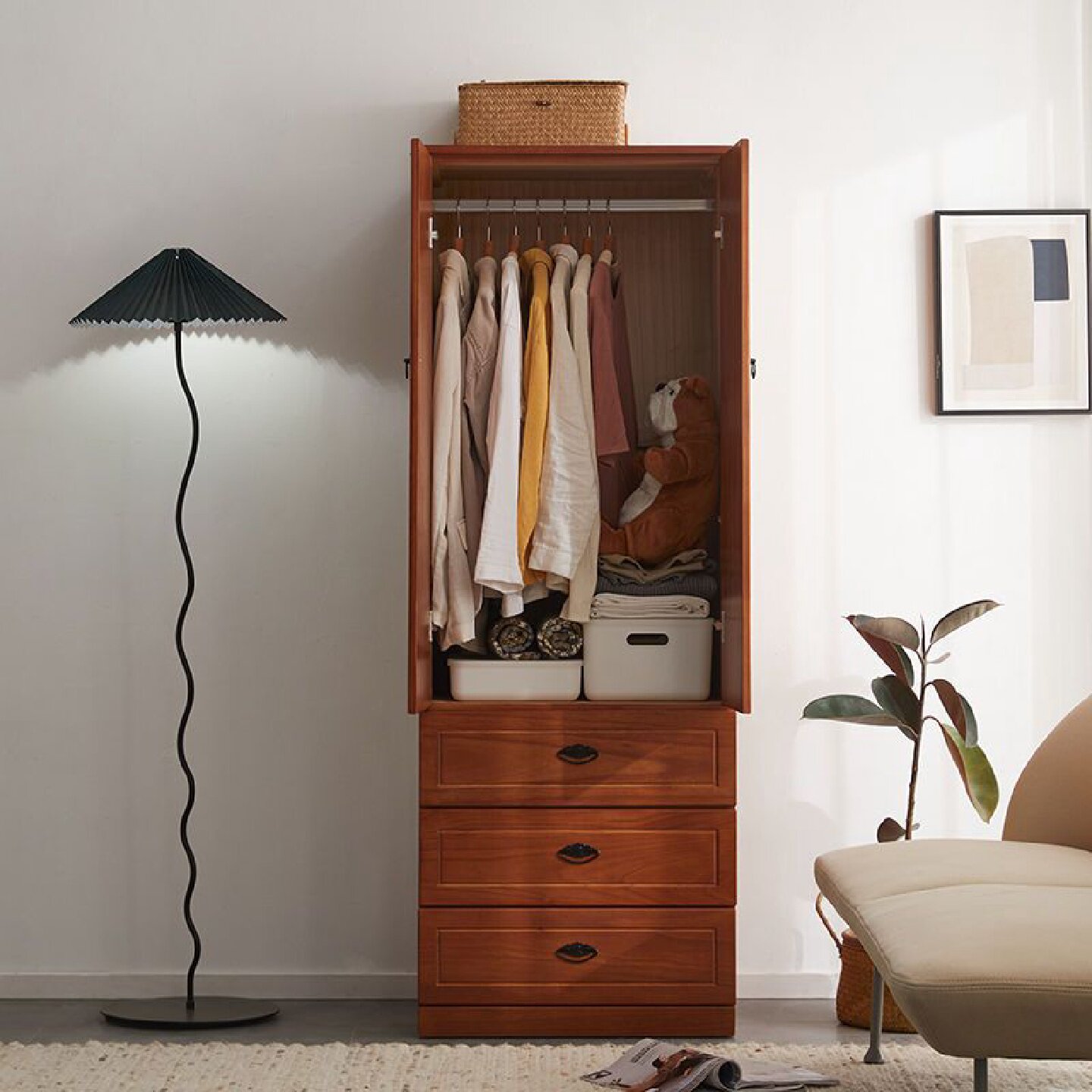 卧室衣物收纳柜实木家用开门抽屉式储物柜简约夹缝斗柜小户型衣柜