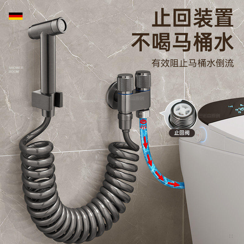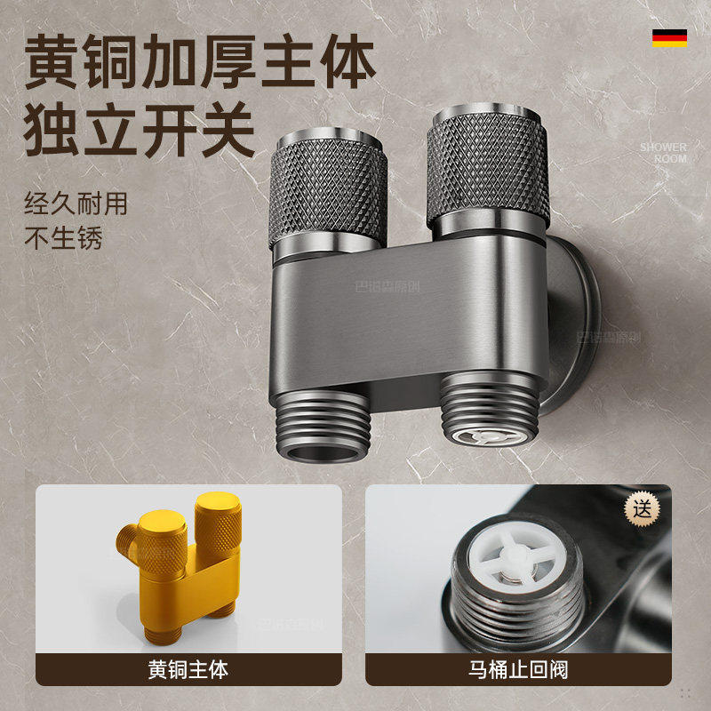 智能马桶冲洗喷枪水龙头伴侣角阀一进二出带高压水枪卫生间洗厕所