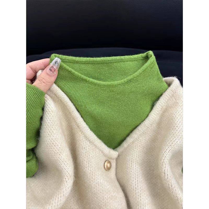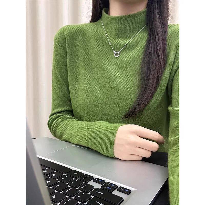 韩系穿搭半高领长袖针织衫女秋冬新款高级感修身显瘦内搭打底上衣