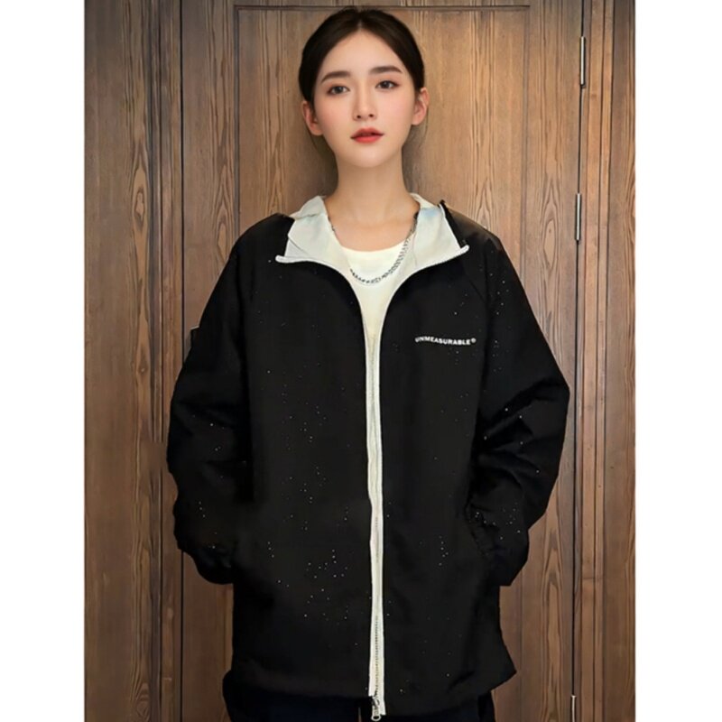 满天星两面穿情侣夹克男女同款春秋季时尚百搭防风条纹冲锋衣外套